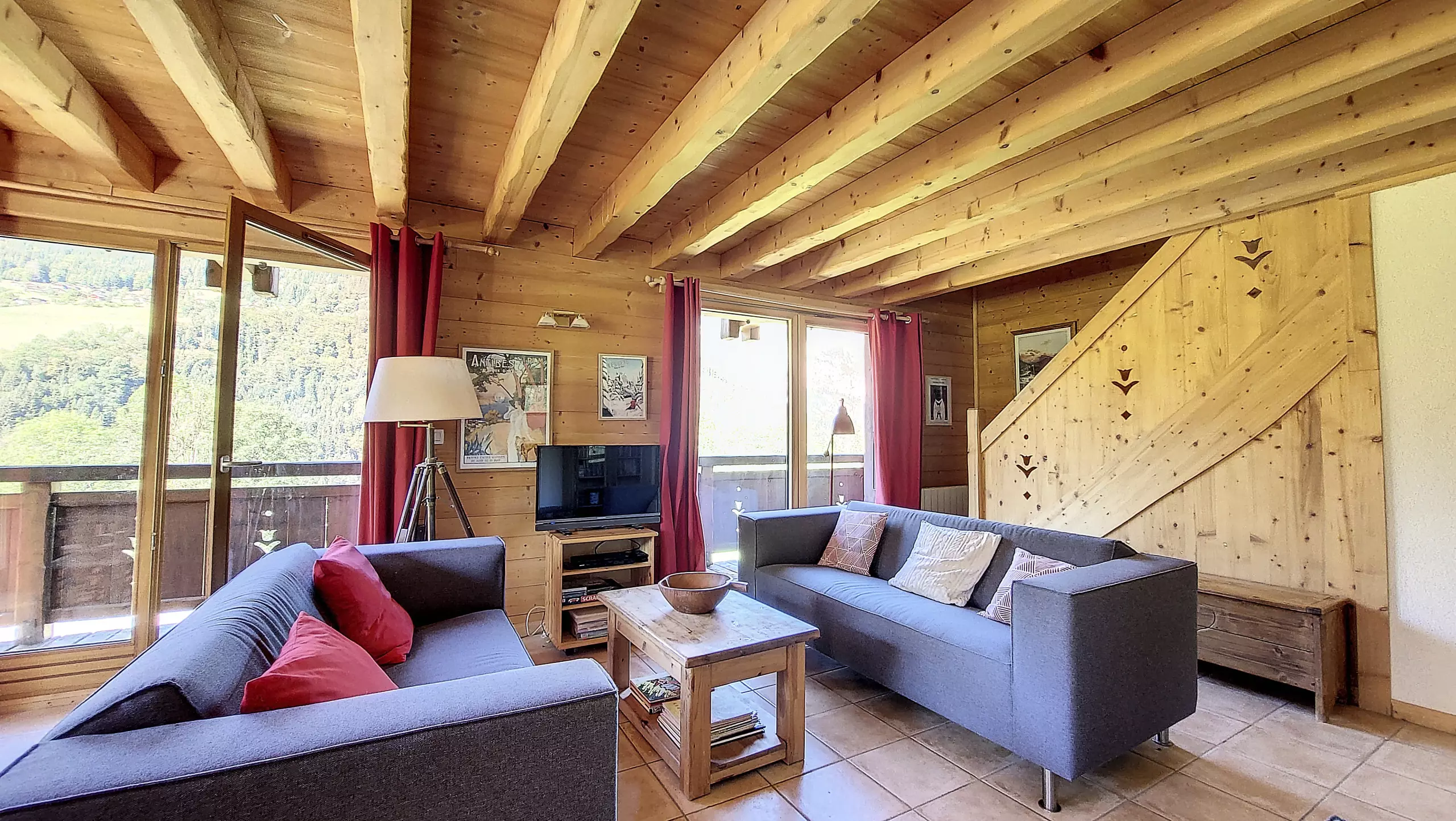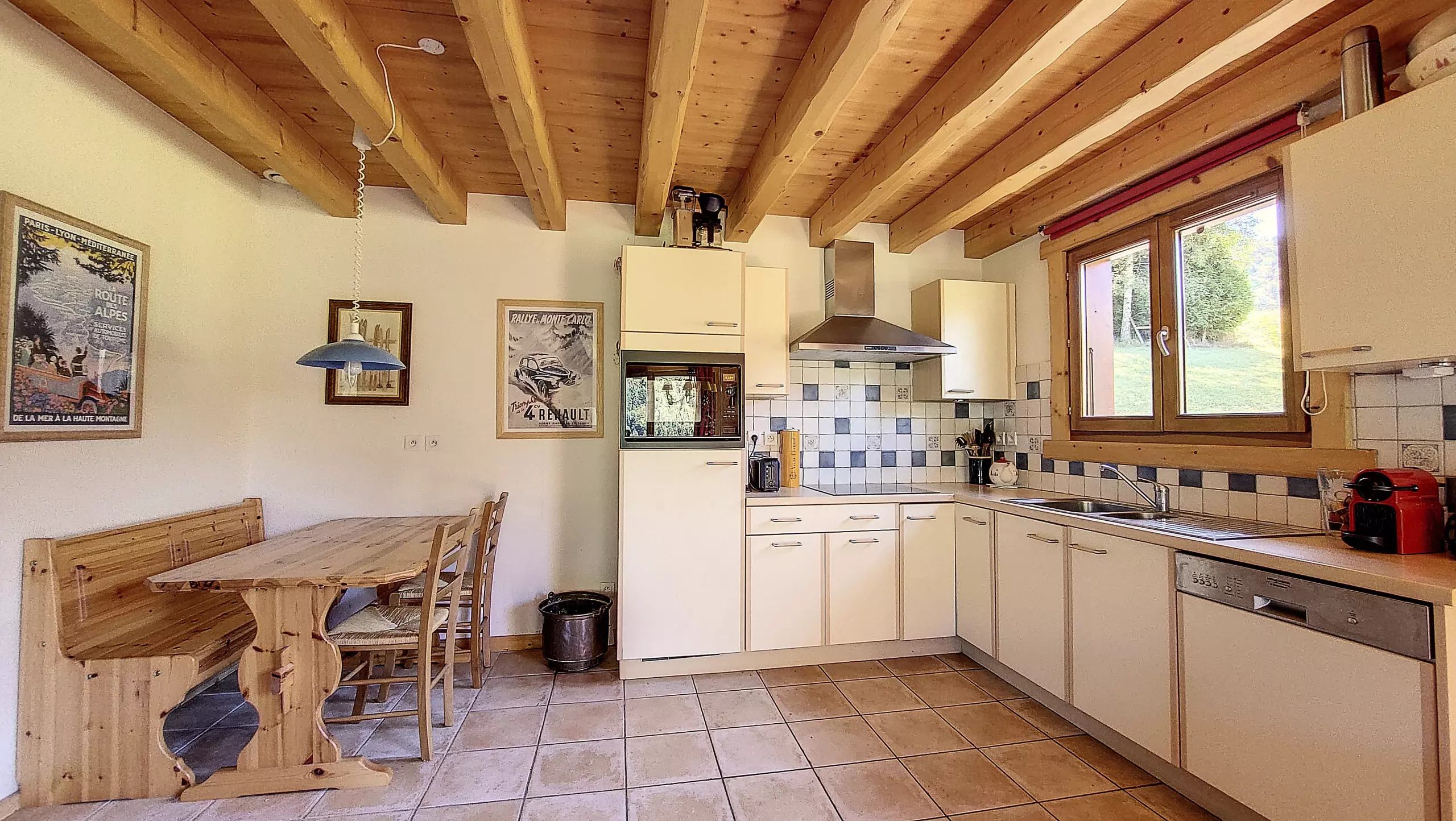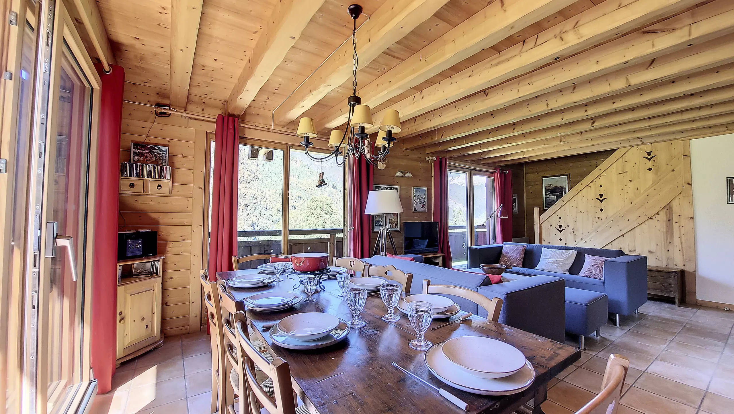 L'espace, meublé avec goût, mê de l’ancien et esprit montagnard, créant un environnement chaleureux et accueillant.