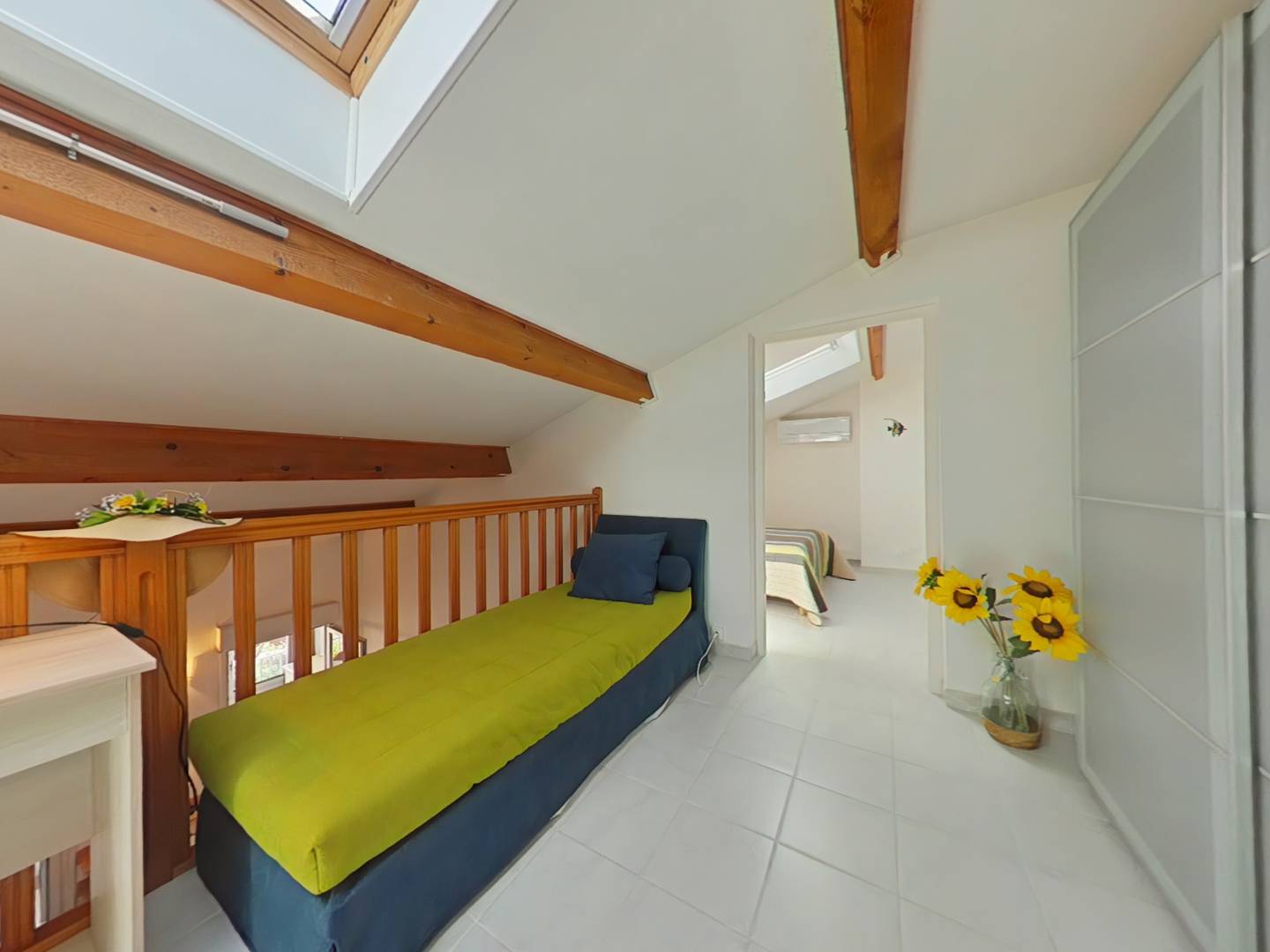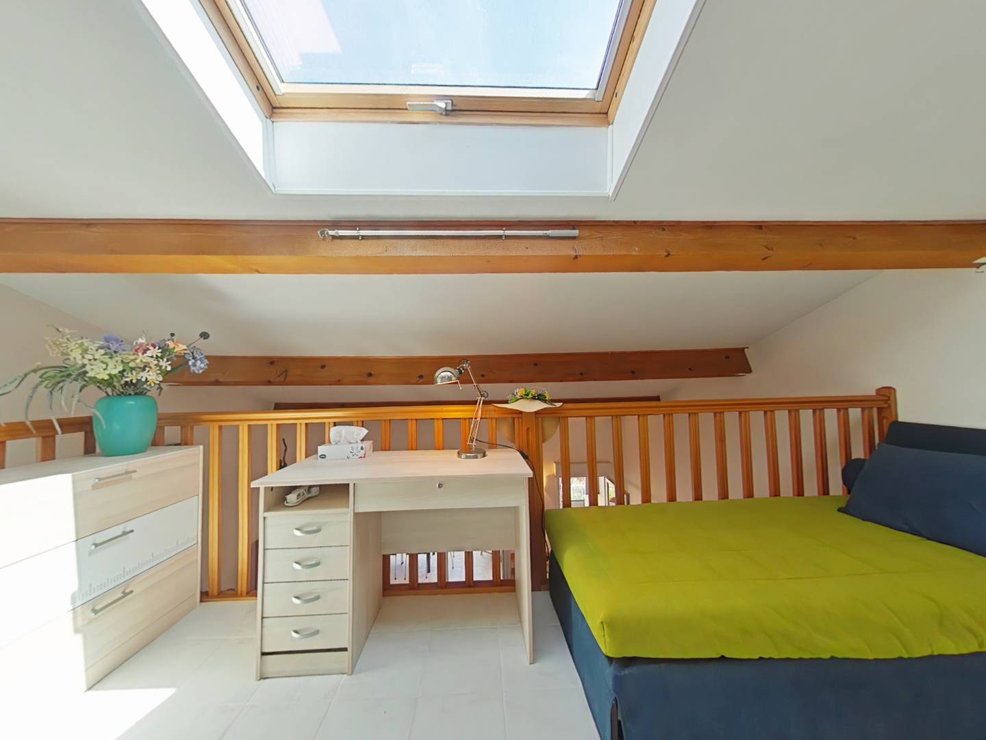 Le logement possède une mezzanine servant de coin bureau et vous permettant de rejoindre la deuxième chambre.