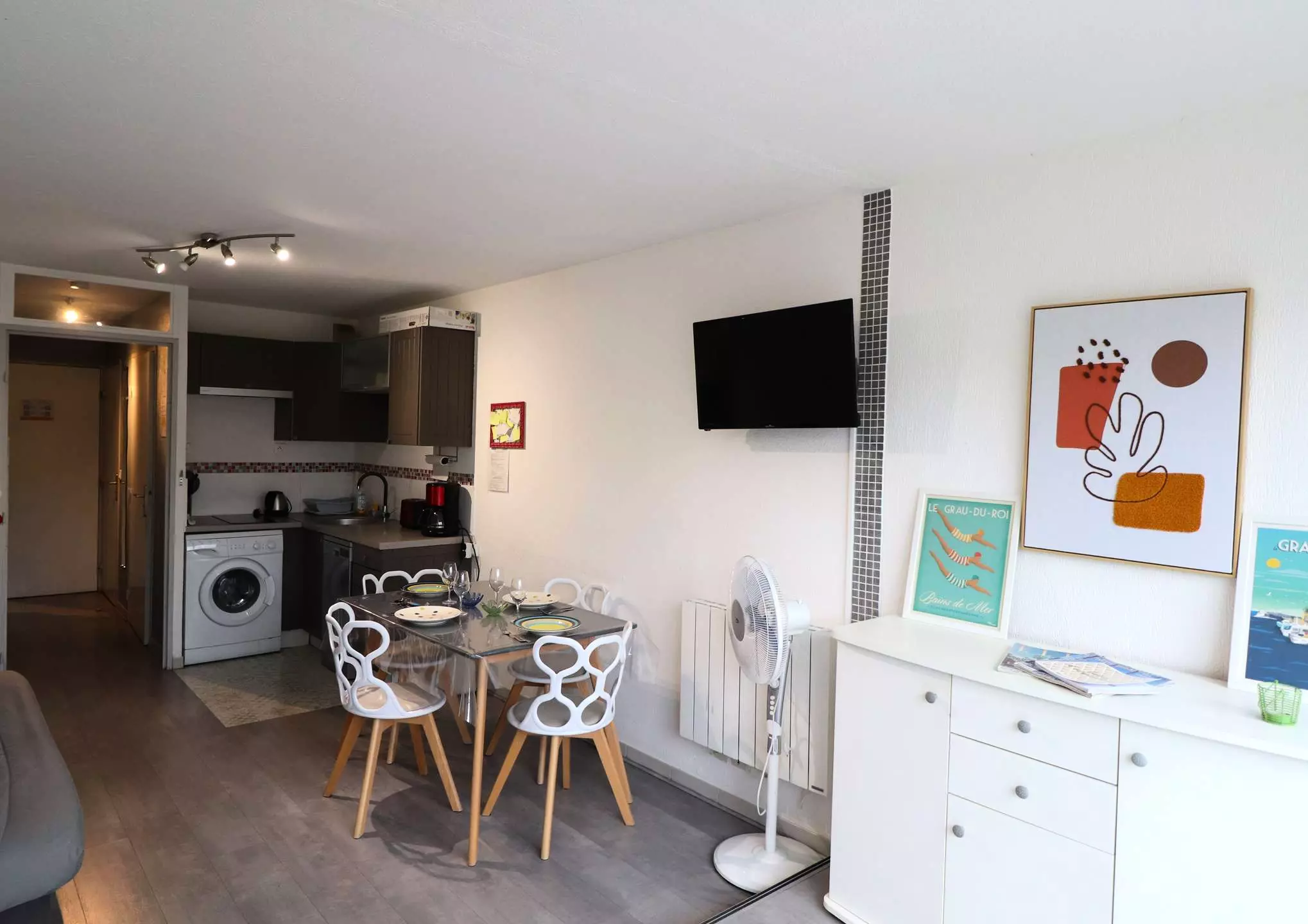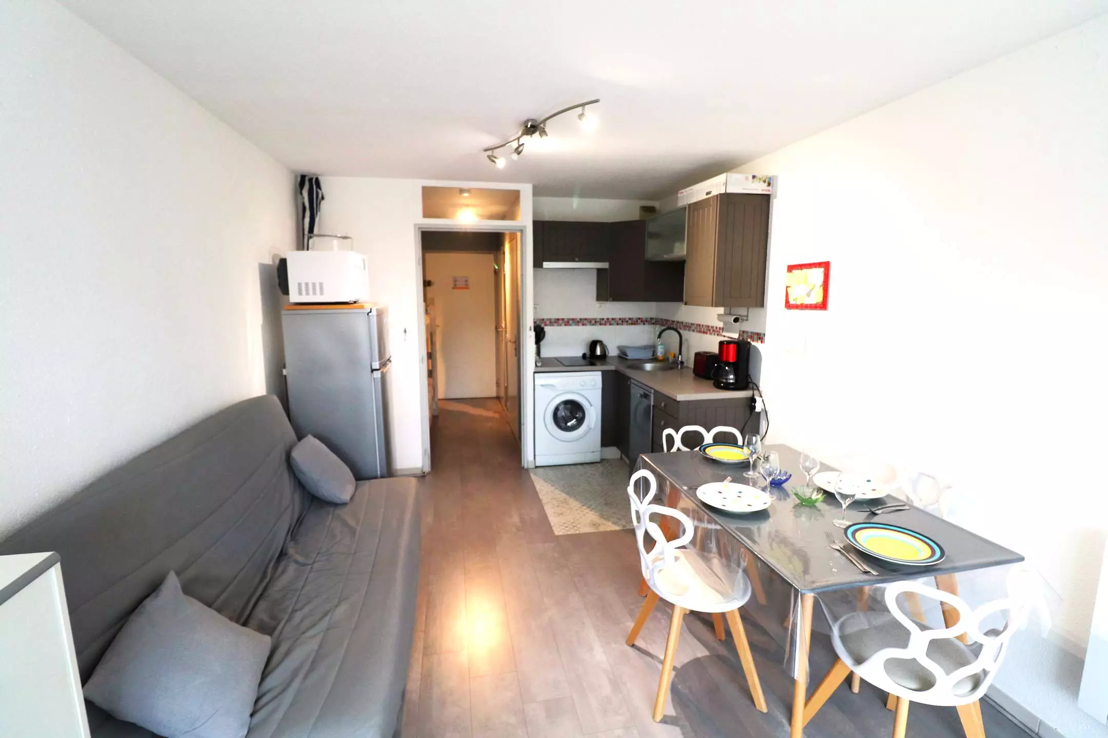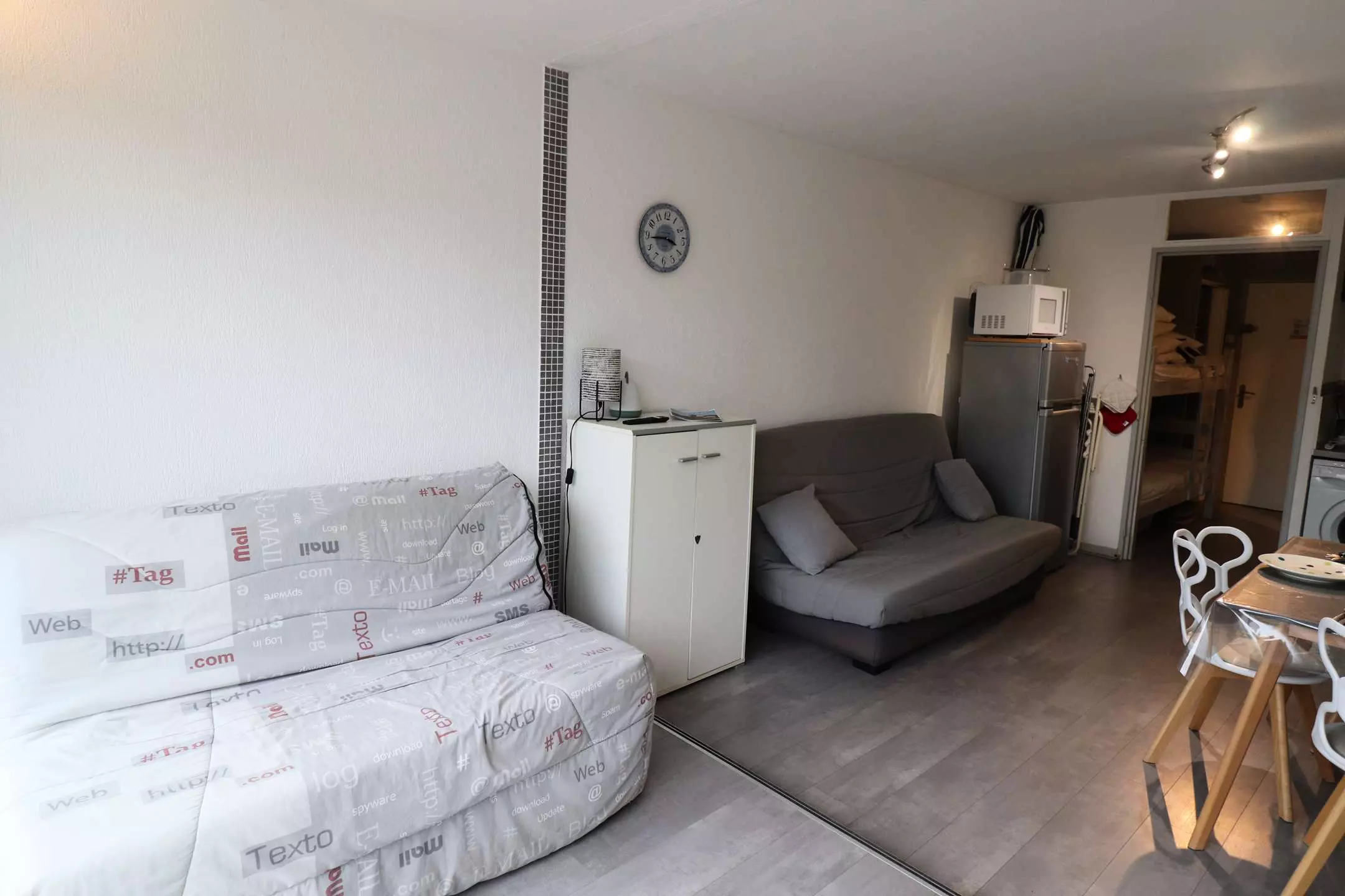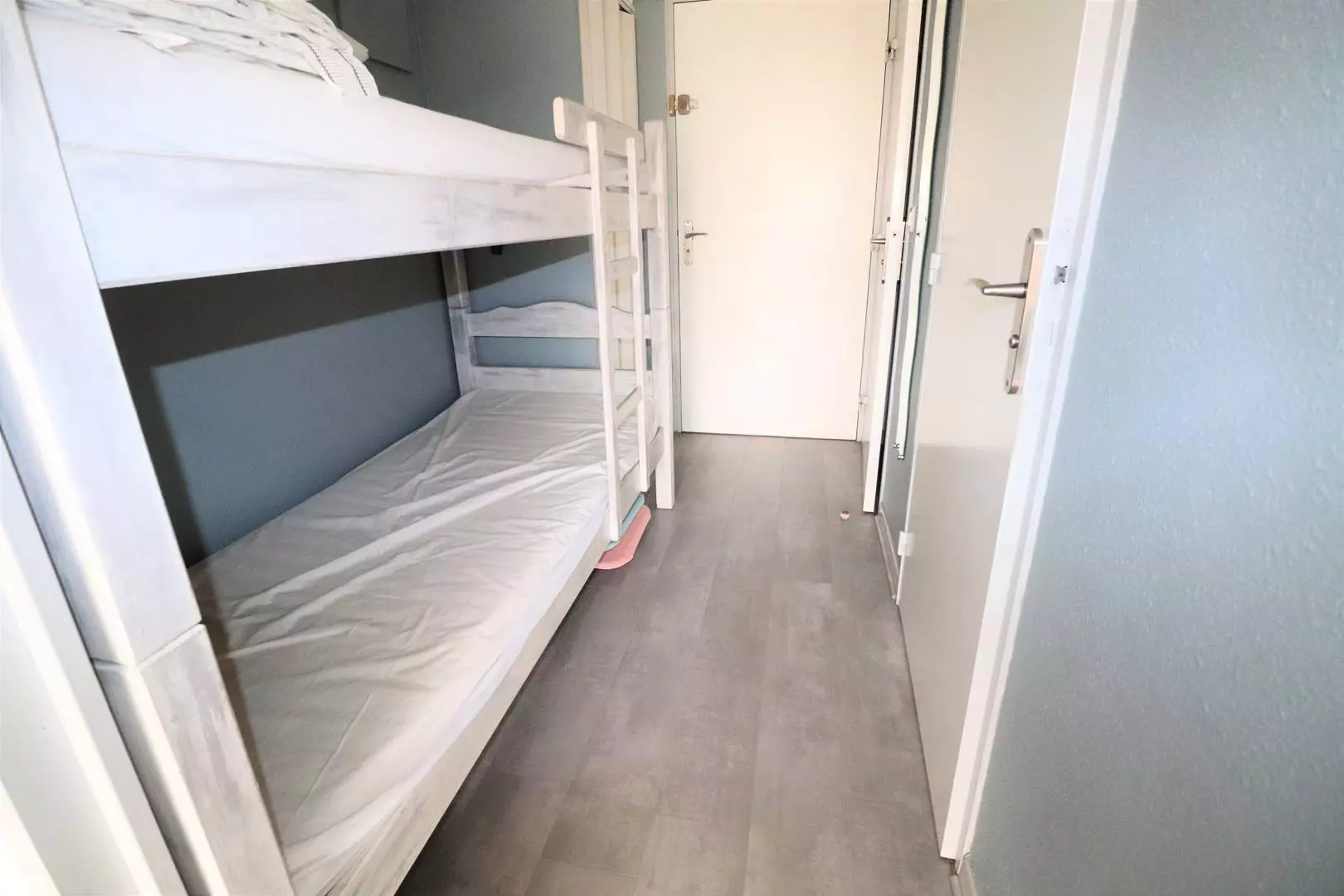 L'appartement comprend un séjour lumineux avec 2 clic-clac pour 2 personnes, une cuisine équipée avec lave-vaisselle et lave-linge. Le coin cabine dispose de 2 lits superposés 1 personne. Vous trouverez également une salle d'eau et des WC séparés.