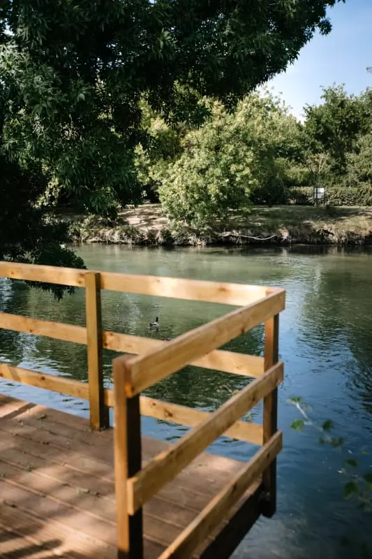 Le point culminant de cette propriété est son accès privilégié à la rivière grâce à un petit ponton pittoresque. C'est l'endroit parfait pour siroter un apéritif en fin de journée tout en admirant la beauté paisible de la rivière ou pour jeter une ligne à l'eau et essayer de pêcher votre propre dîner.