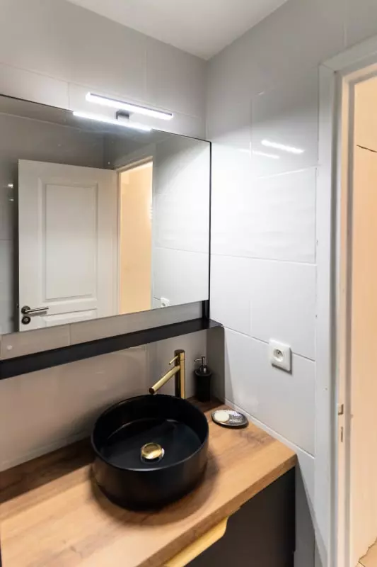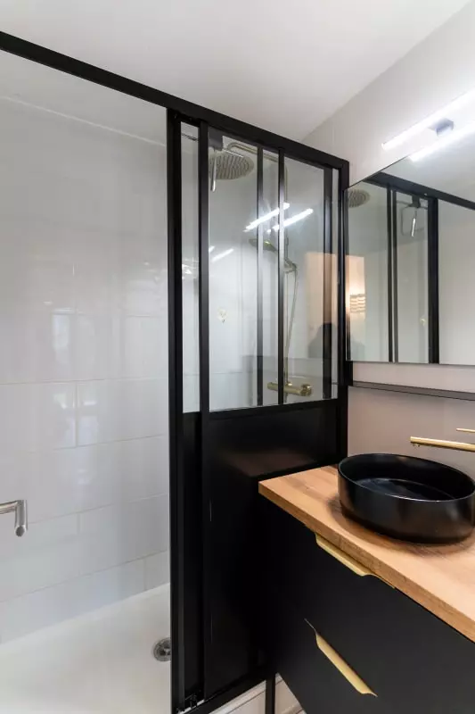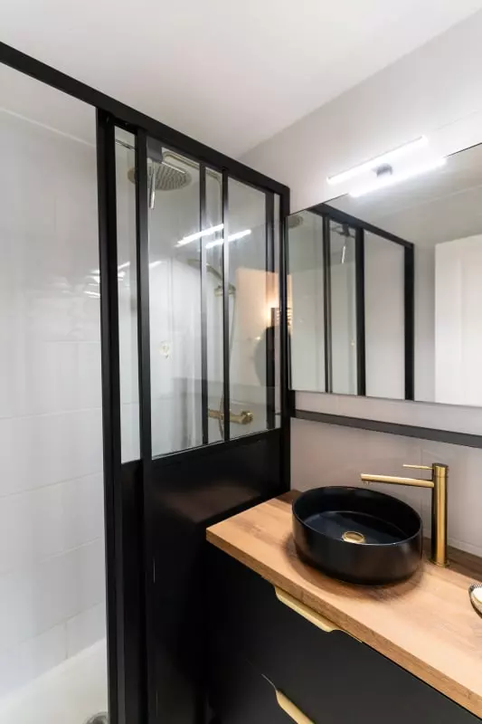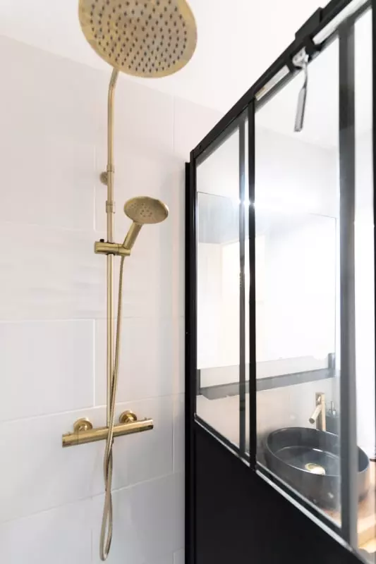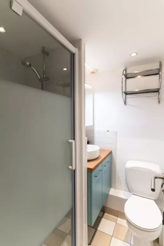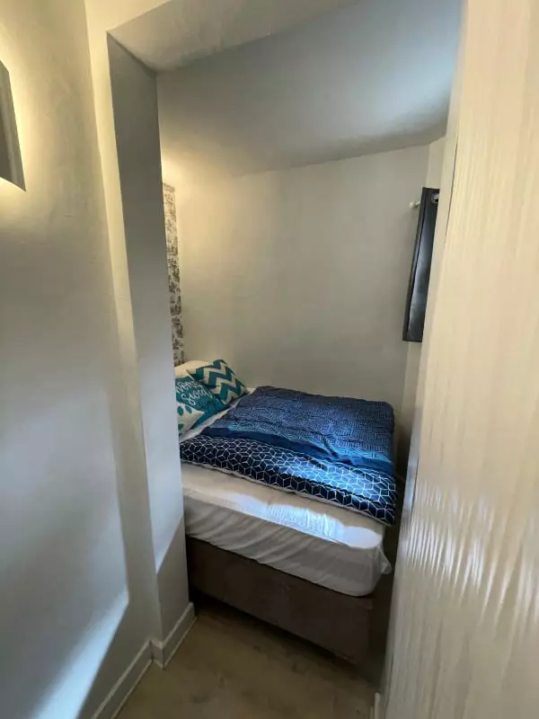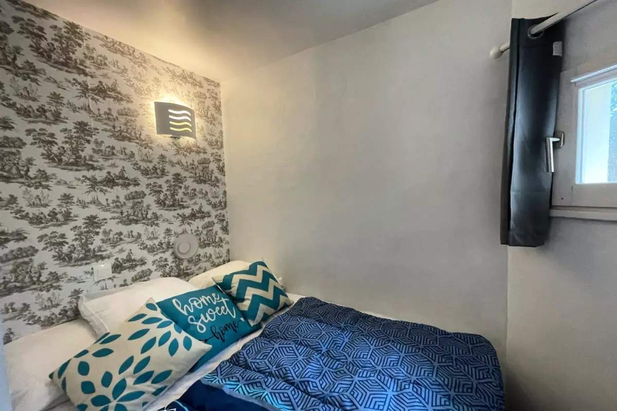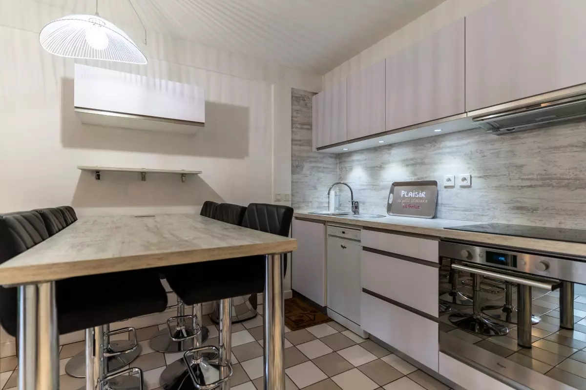 Séjour avec canapé lit en 140, cuisine ouverte avec lave vaisselle, four, grand réfrigérateur, cafetière Nespresso. TV