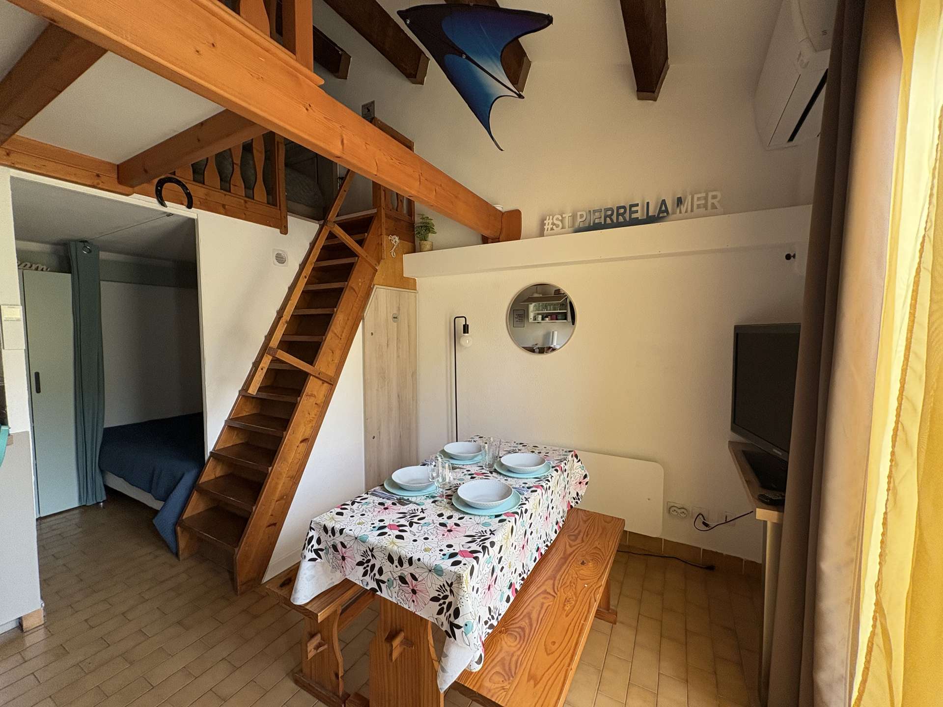 Cet hébergement de vacances en famille situé proche de la piscine comprend un séjour avec téléviseur (sous réserve d'une bonne réception), un espace cuisine équipée refaite à neuf, une chambre avec un lit double en 140, une salle d'eau avec WC, à l'étage une mezzanine avec un lit double en 160.