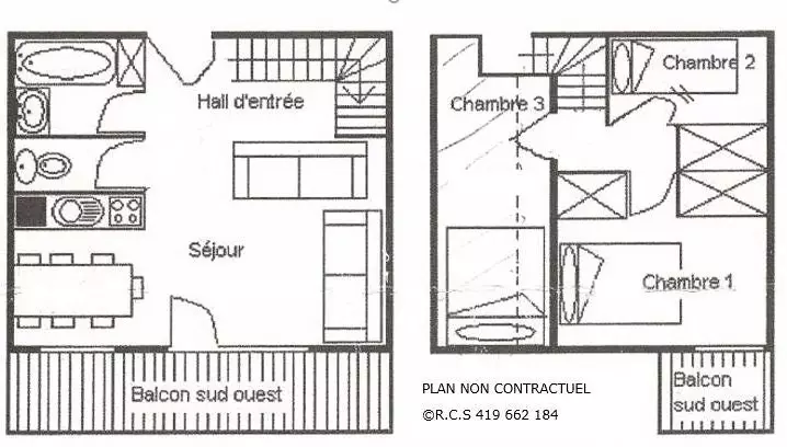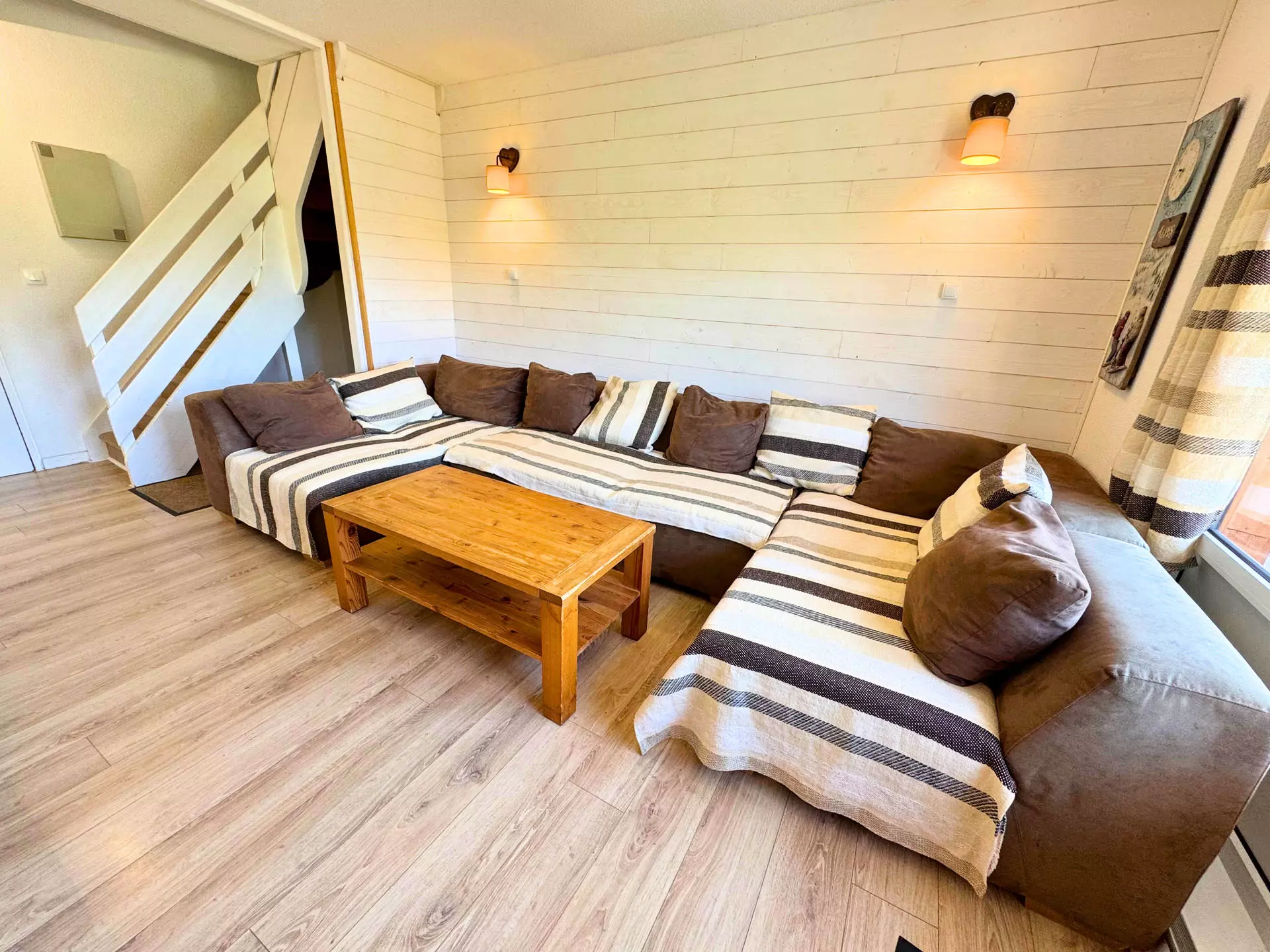 Résidence Necou (N°711), duplex entièrement rénové de 4 pièces pour 6 personnes 40m², au 7ème étage avec ascenseur et au 4ème étage au niveau du balcon, grand balcon exposé Sud-Ouest, vue dégagée sur La Masse