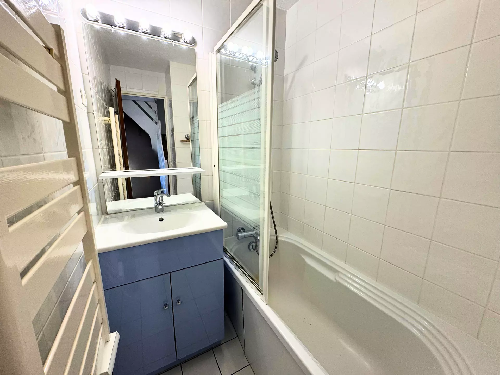 Salle de bains : lavabo, baignoire