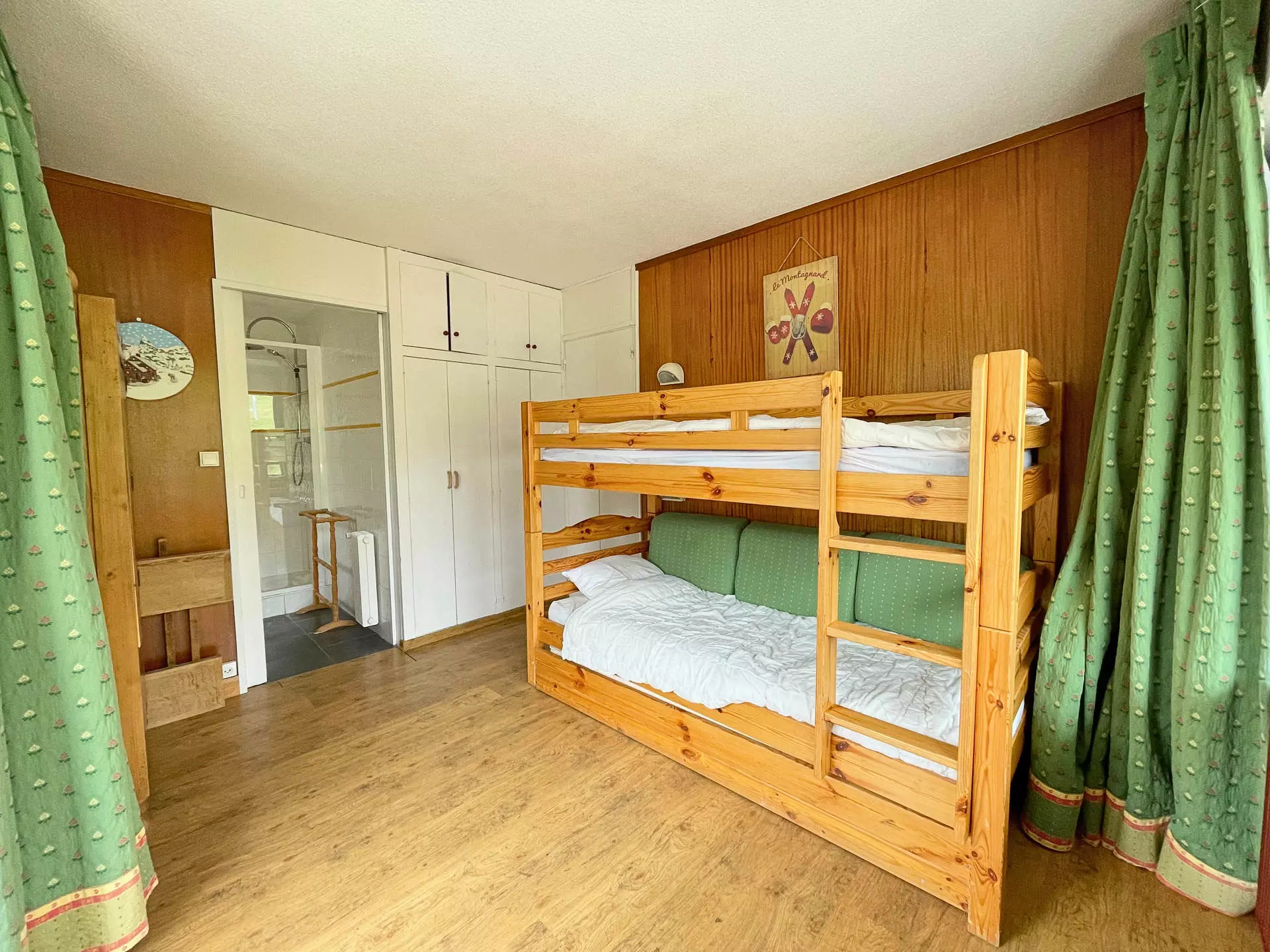 Chambre : 1 lit superposé (2x80cm), 1 lit tiroir 1 personne (80cm)