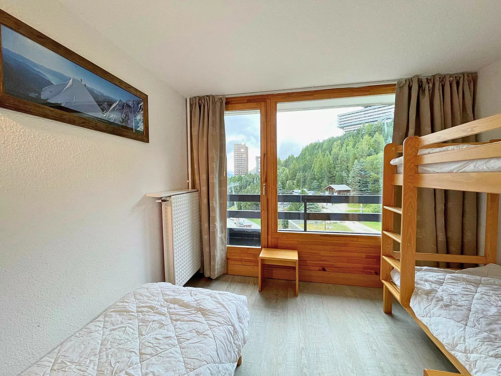 Chambre : lit simple superposé (2x80 cm), lit simple (1x80 cm), petit balcon exposé Nord