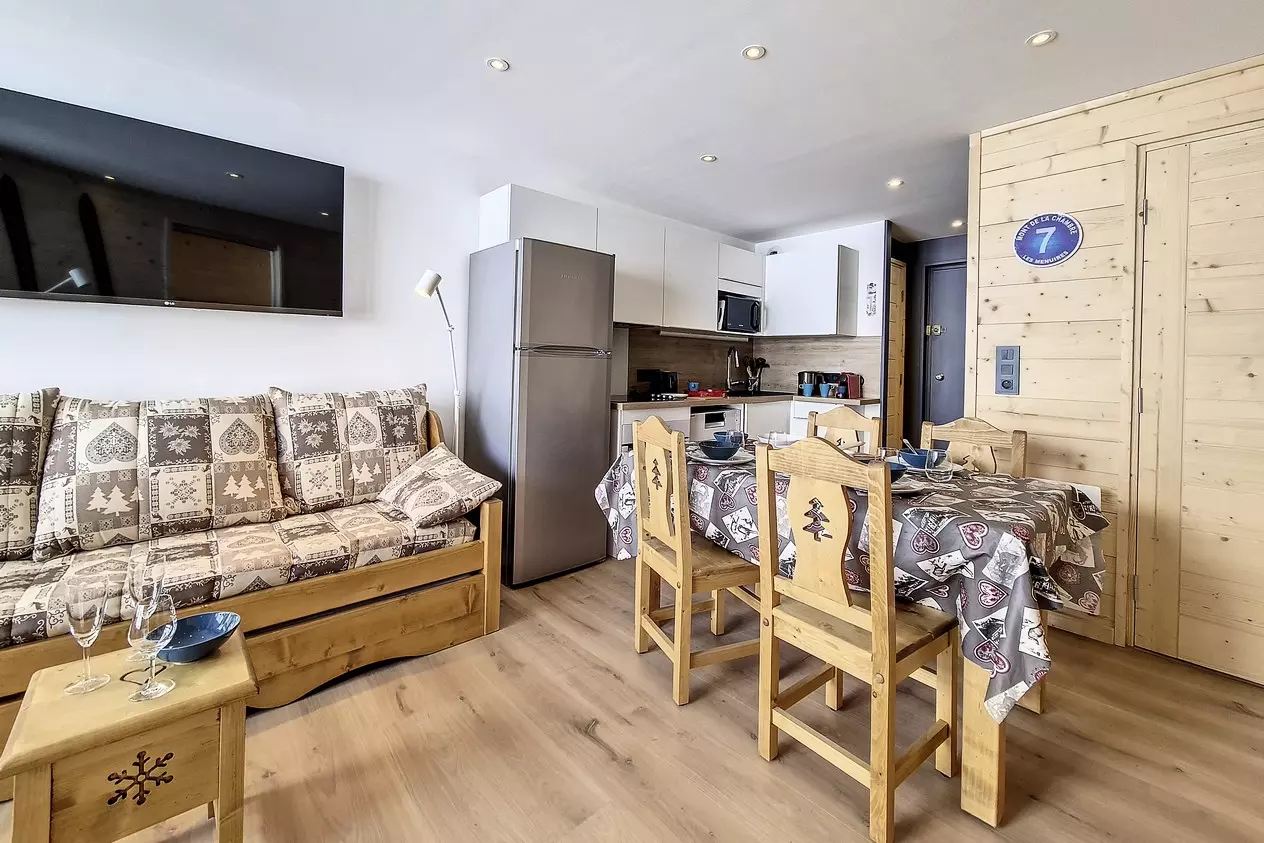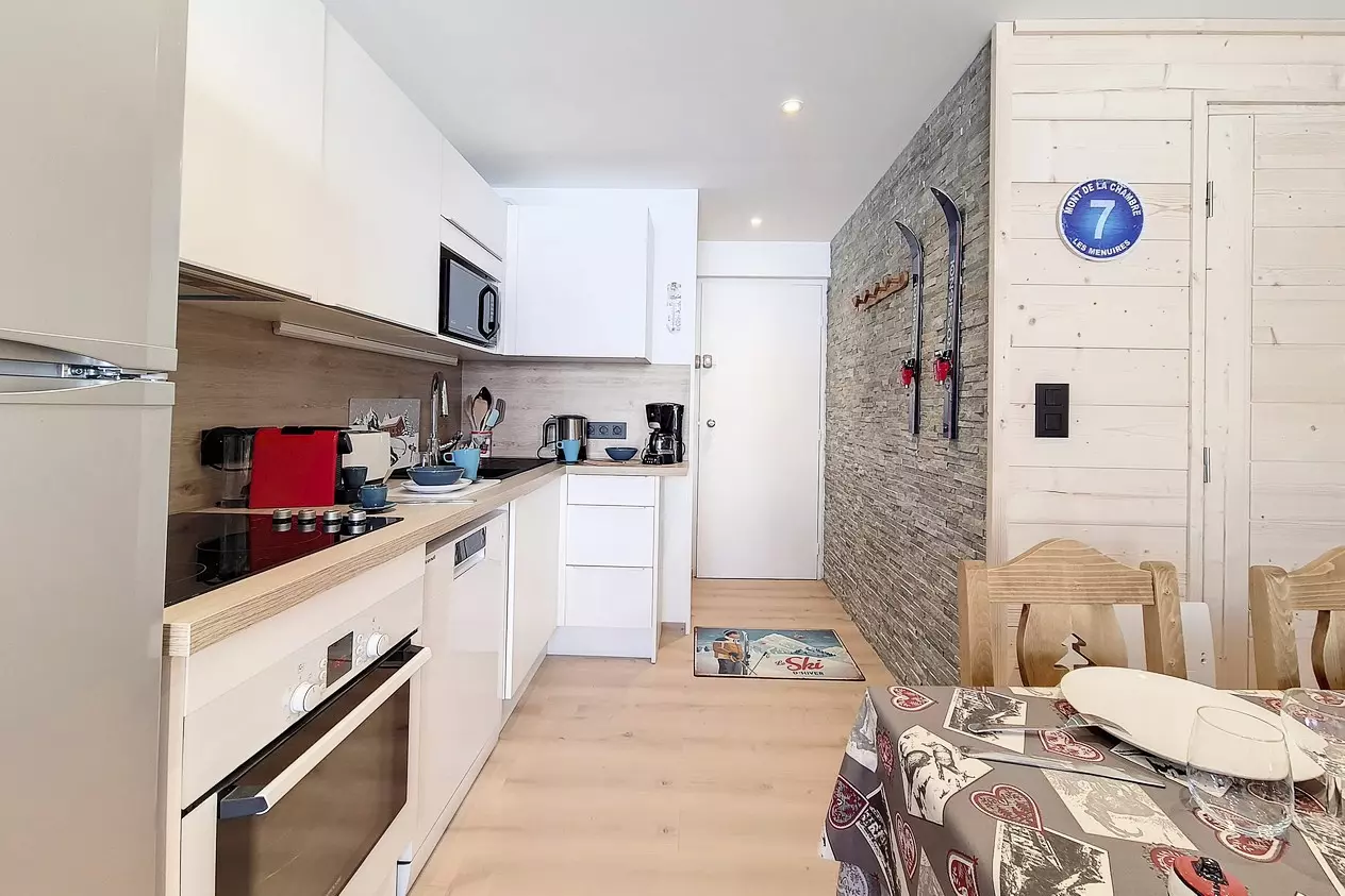 Cet appartement entièrement rénové en décembre 2022 est équipé avec modernité et vous propose du bois et sa décoration montagnarde