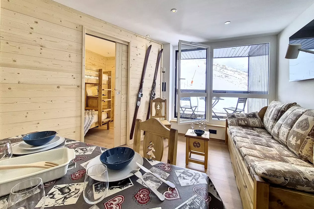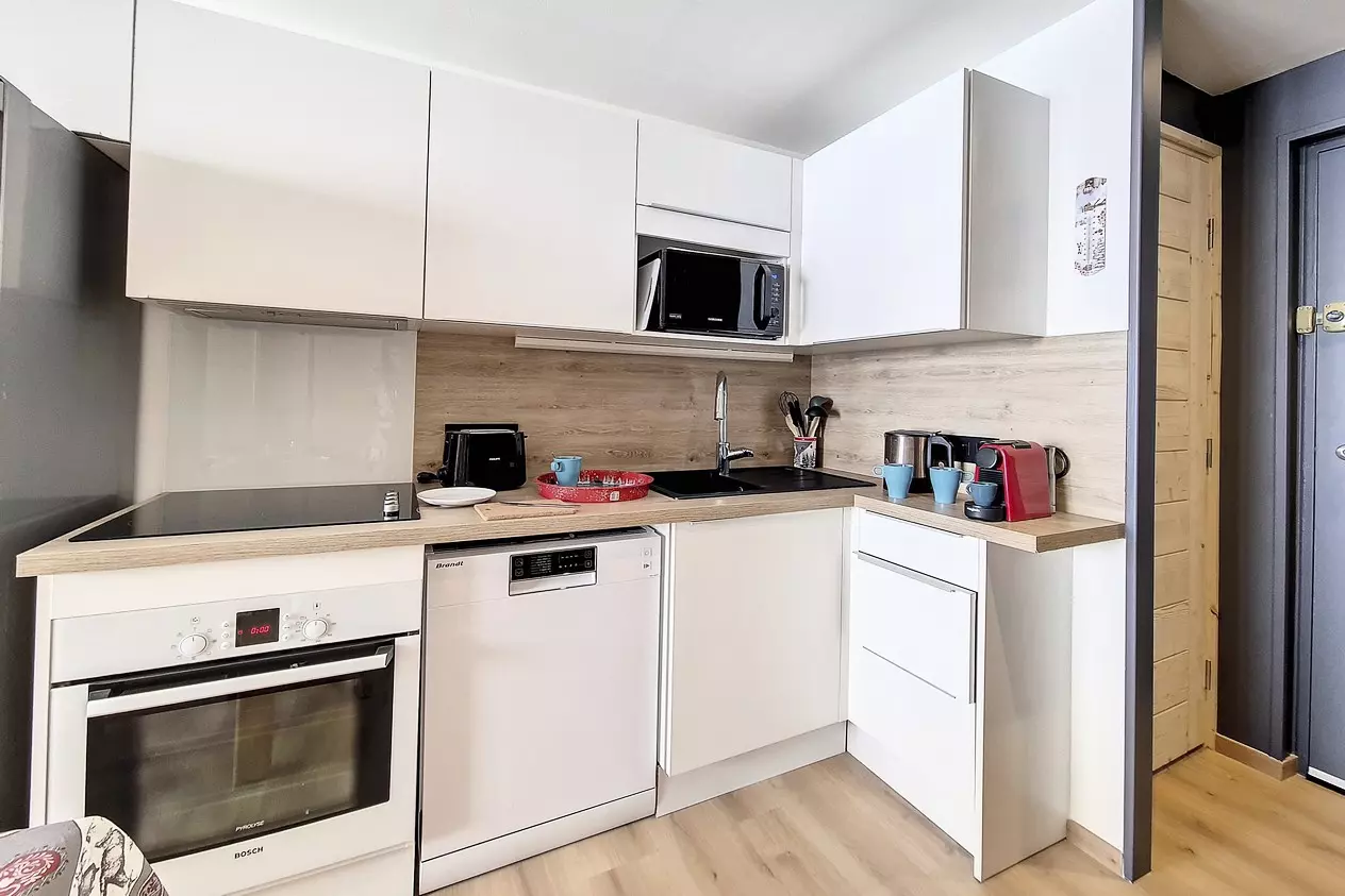 Appartement deux pièces de 28.50 m² équipé pour 4 personnes, situé au 4ème étage avec un balcon exposé Sud-Est.