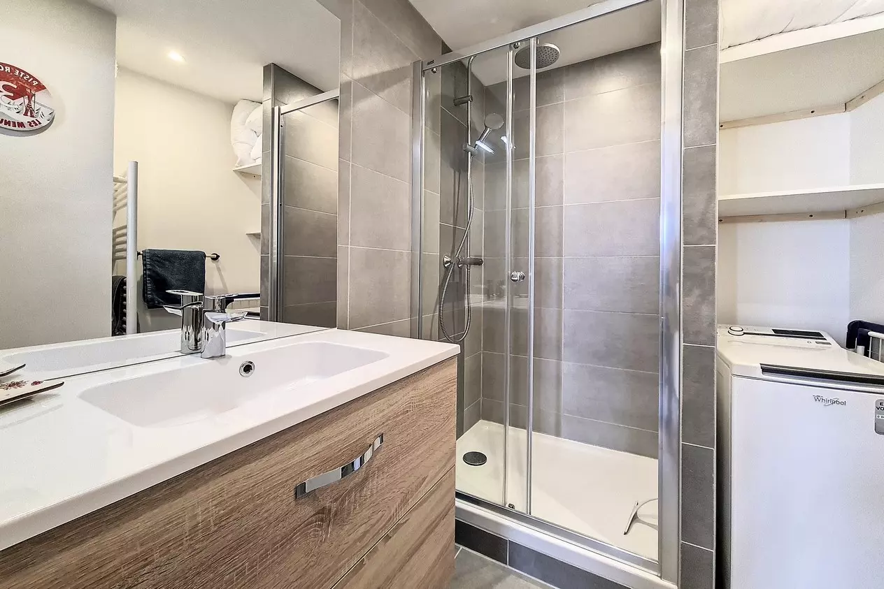 Salle de bains Douche, Machine à laver, sèche serviette électrique.