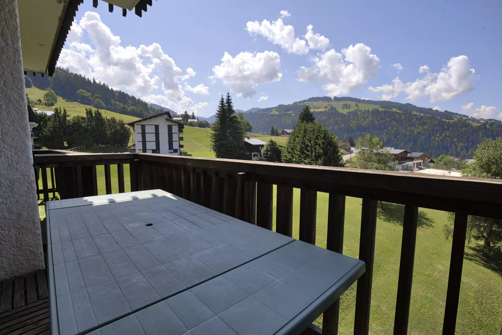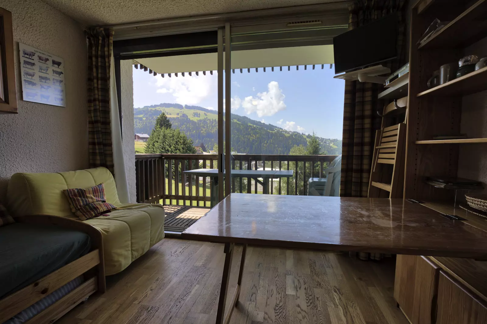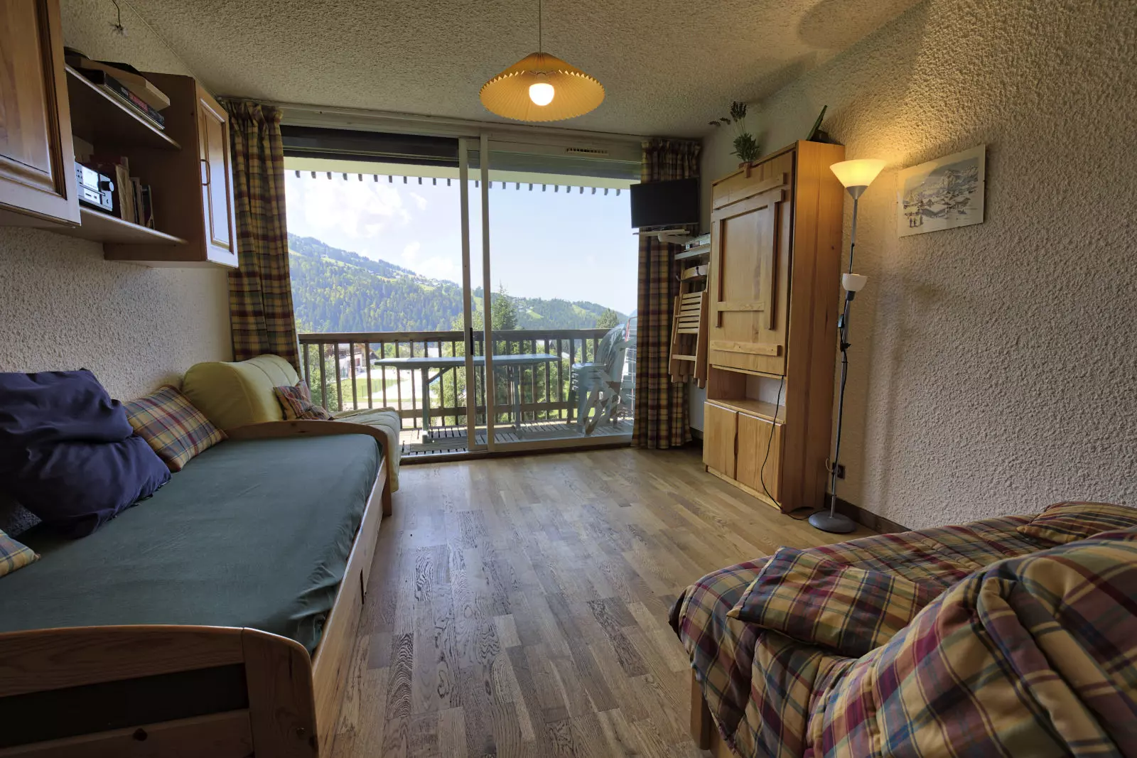 Agréable studio pouvant accueillir jusqu'à 4 voyageurs, de 20 m² au 4ème étage avec un balcon SUD offrant une vue dégagée sur le village, le Mont Charvin et la vallée.