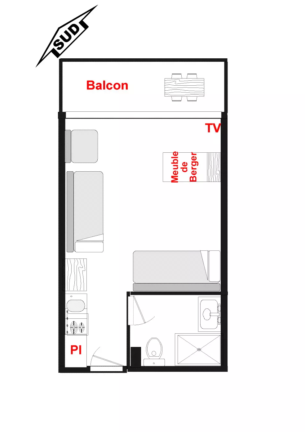 NOTRE AVIS : Studio fonctionnel, lumineux avec sa grande baie vitrée. Balcon avec vue très dégagée. Idéal pour des vacances en amoureux ou pour un couple avec enfants.
