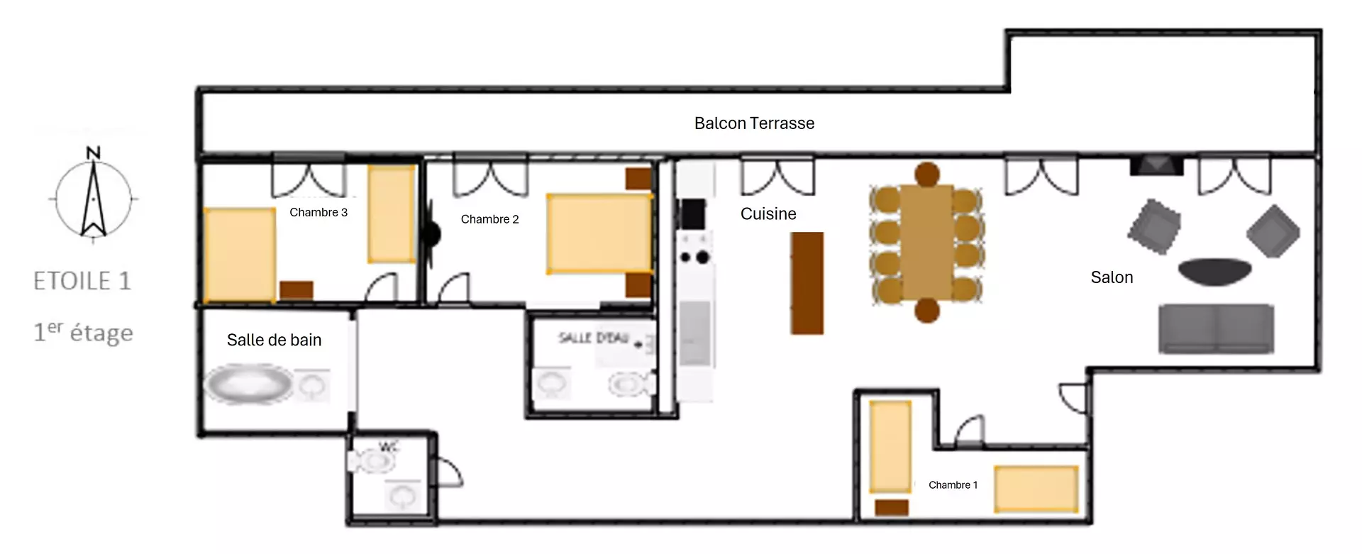 - 3 lits doubles