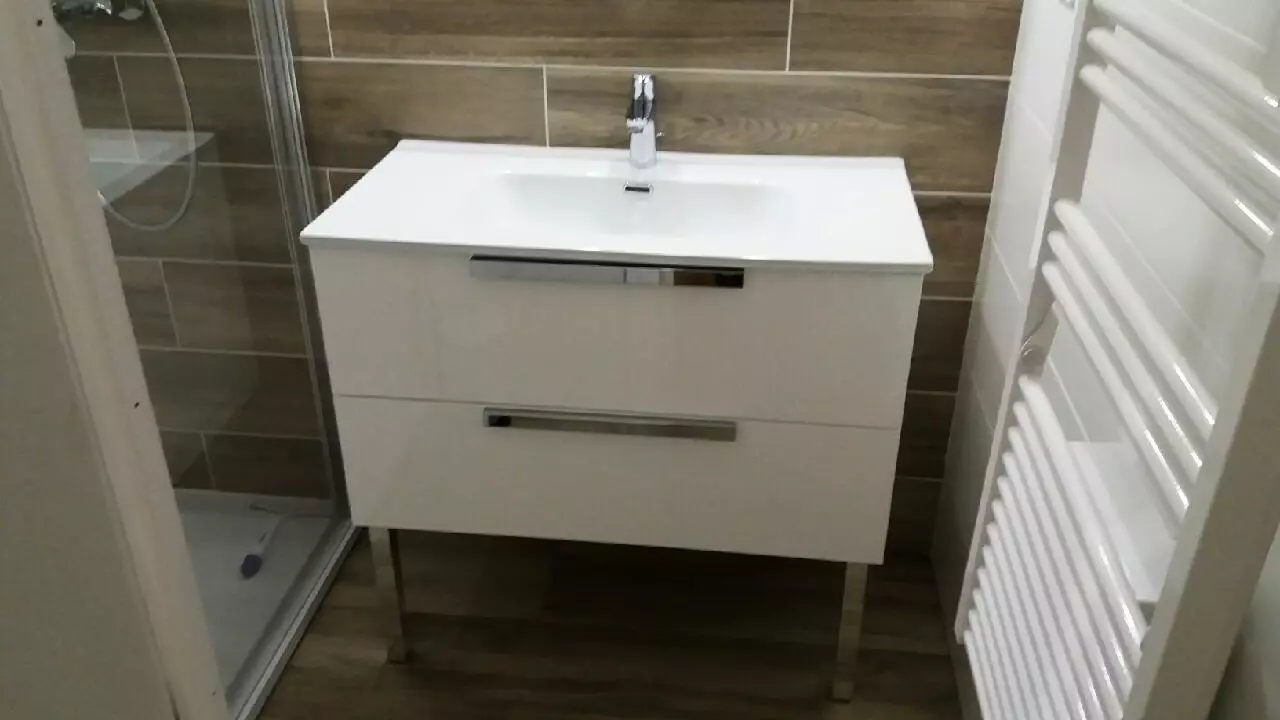 Salle d'eau : lavabo, douche et sèche-cheveux. WC indépendant.