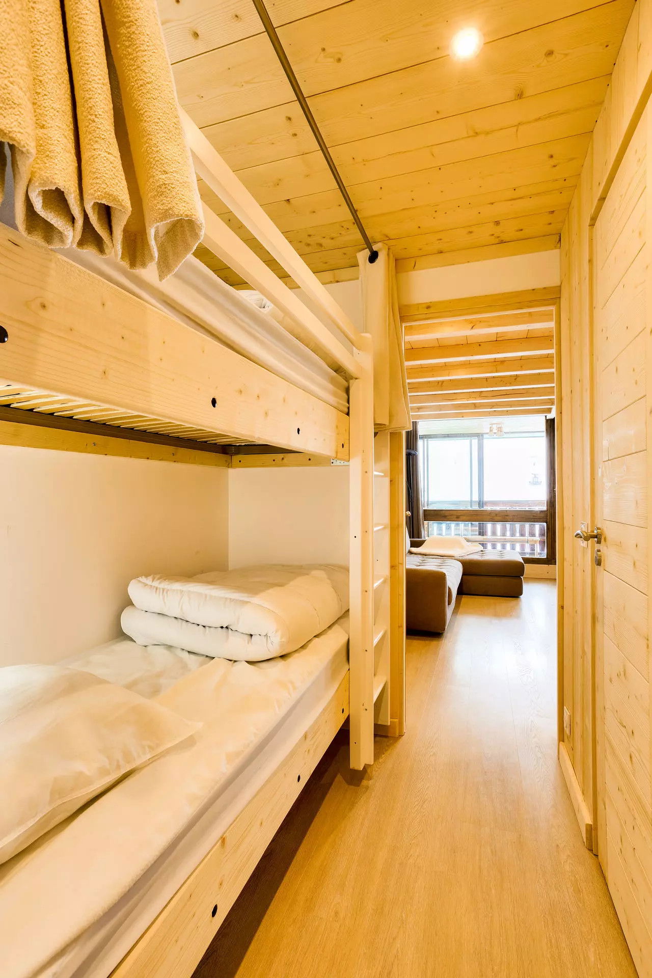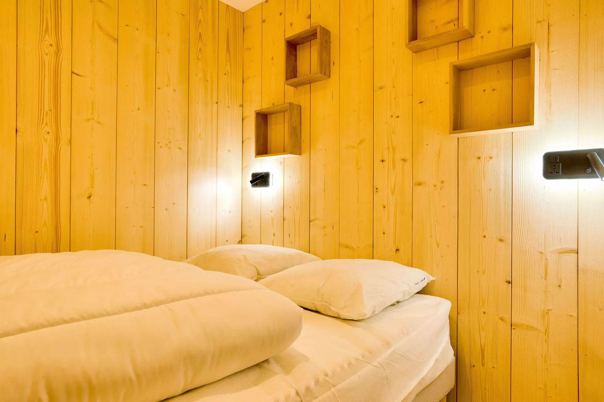 Il est équipé d'un lit double et de lits superposés dans le couloir.