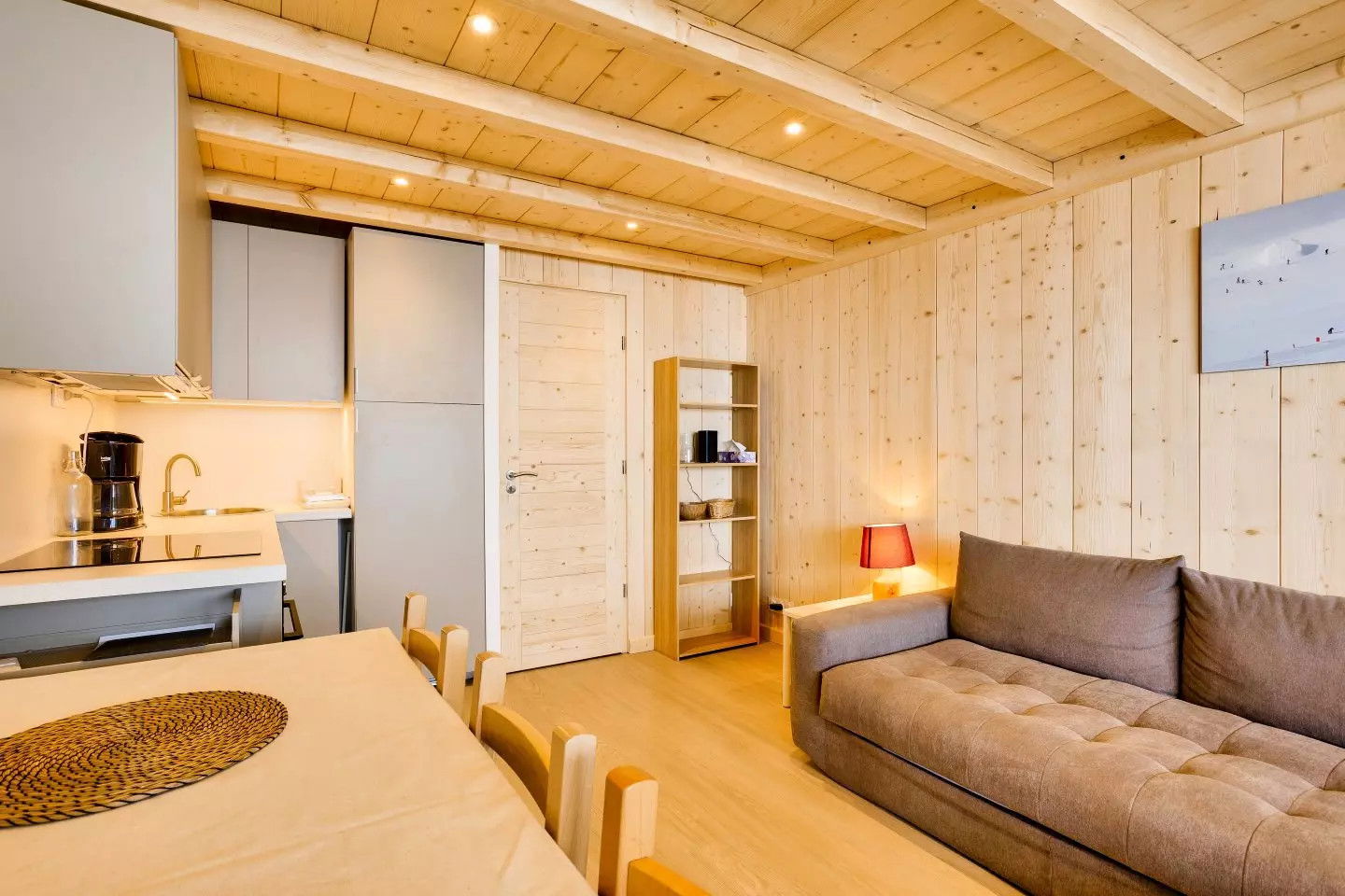 Ce studio cabine pour 4 personnes, de 33m2 environ est situé au quatrième étage avec ascenseur et dispose d' une veranda orientée sud/ouest.