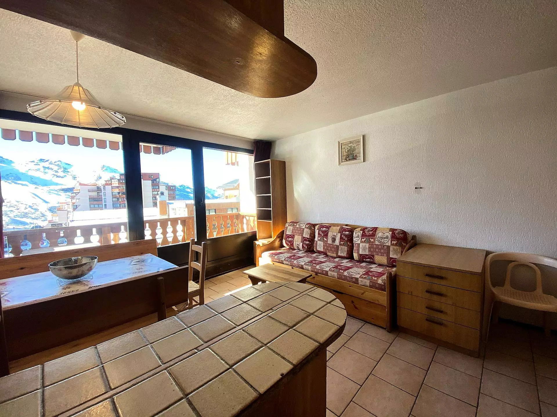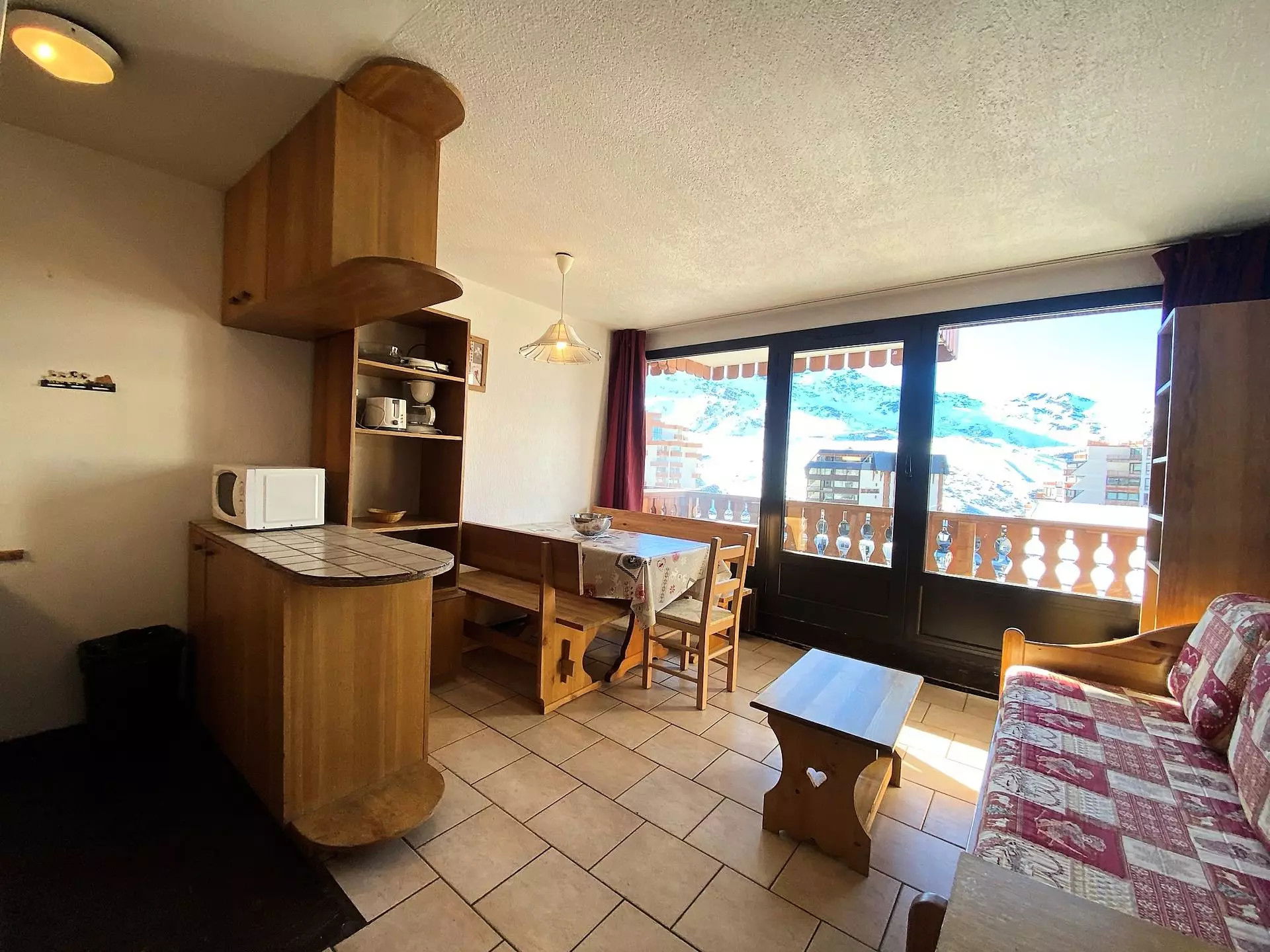 Il offre une vue sur la station et la rue animée de Val Thorens.