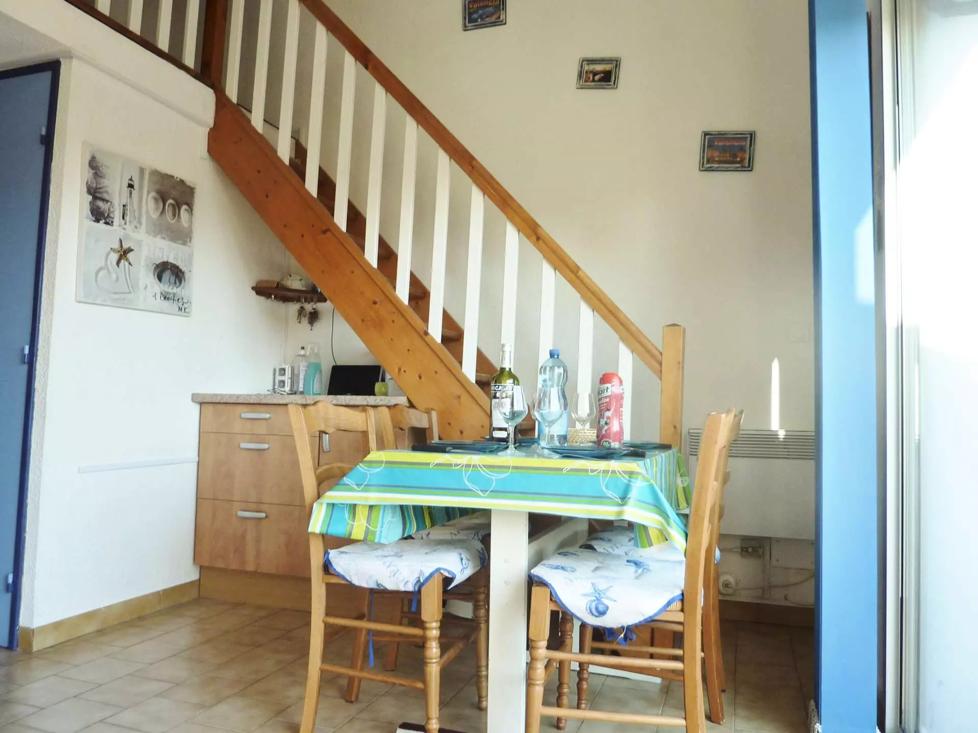 Séjour lumineux qui dispose de la climatisation, d'une télévision, d'une table et de chaises. L’espace est convivial et idéal pour vos moments de détente. La cuisine ouverte entièrement équipée dispose d’un micro-ondes, d'un réfrigérateur/congélateur, d'une plaque vitrocéramique, d’une cafetière électrique, d’un lave-linge, ainsi que de toute la vaisselle nécessaire. Une chambre avec un grand lit pour une bonne nuit de sommeil. Une salle d'eau fonctionnelle équipée d’une douche et d’un lavabo, avec des WC séparés pour plus de commodité. Une mezzanine spacieuse : un grand lit, un canapé convertible et une télévision.