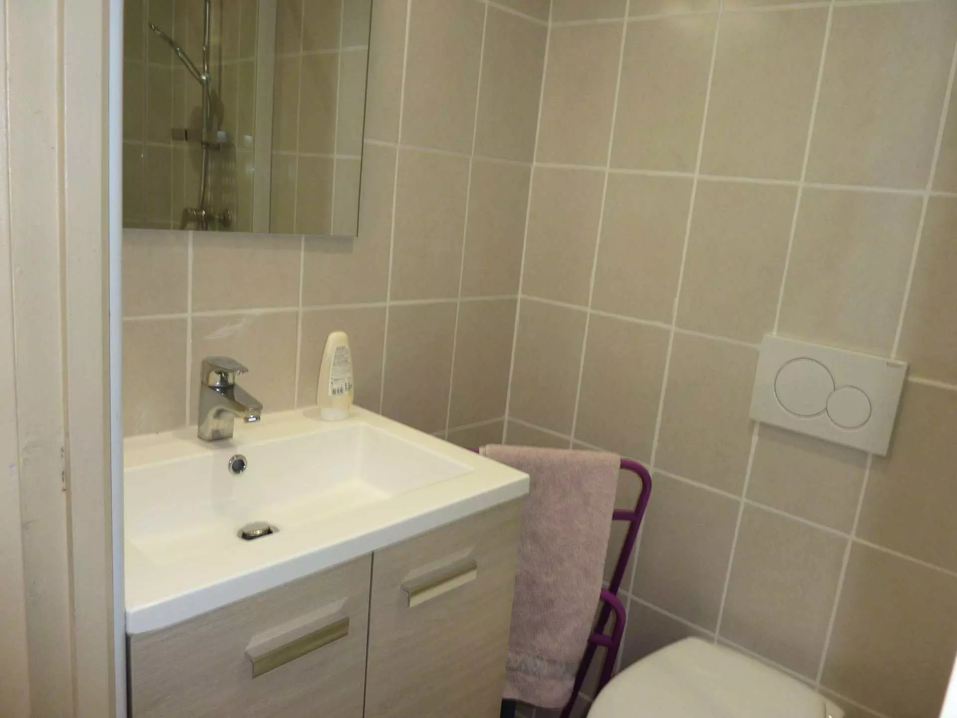 Le séjour est équipé d'un canapé convertible, d'une table avec chaises, d'un meuble de rangement, d'une télévision et de la clim, offrant un espace de détente agréable. La cuisine est entièrement équipée avec réfrigérateur-congélateur, micro-ondes, 4 plaques à gaz, mini-four, cafetière électrique et toute la vaisselle nécessaire pour vos repas. La salle d'eau rénovée dispose d'une douche, d'un lavabo et de WC séparés, pour plus de confort. L'appartement comprend deux chambres : la première avec un lit double et la deuxième avec deux lits simples, idéales pour accueillir confortablement tous les occupants.