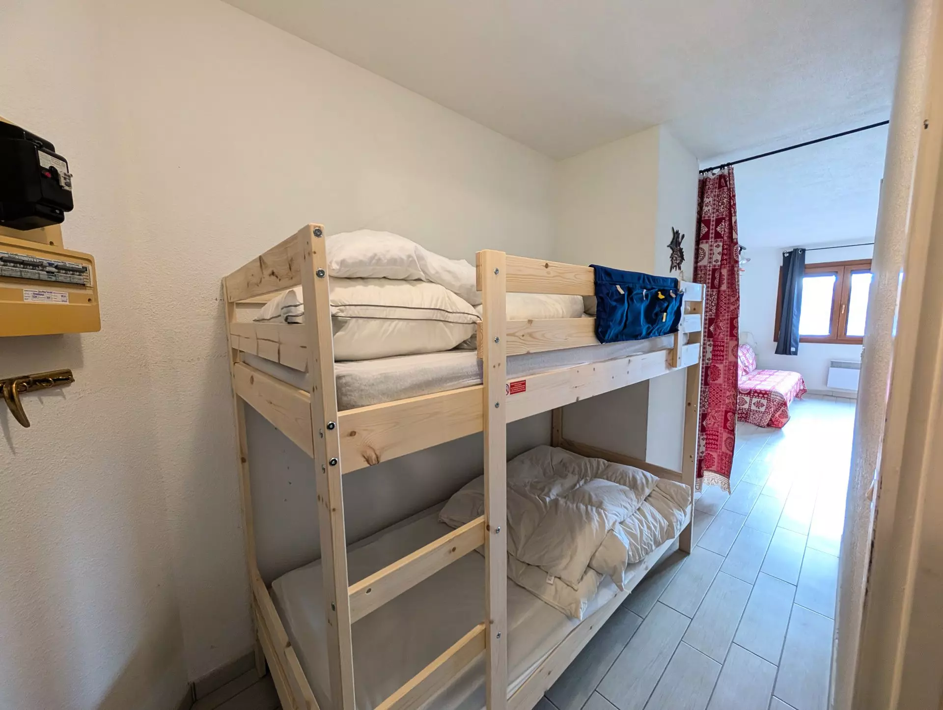 Coin montagne (séparé du séjour par un rideau) : 2 lits superposés 1 pers. (90x190)