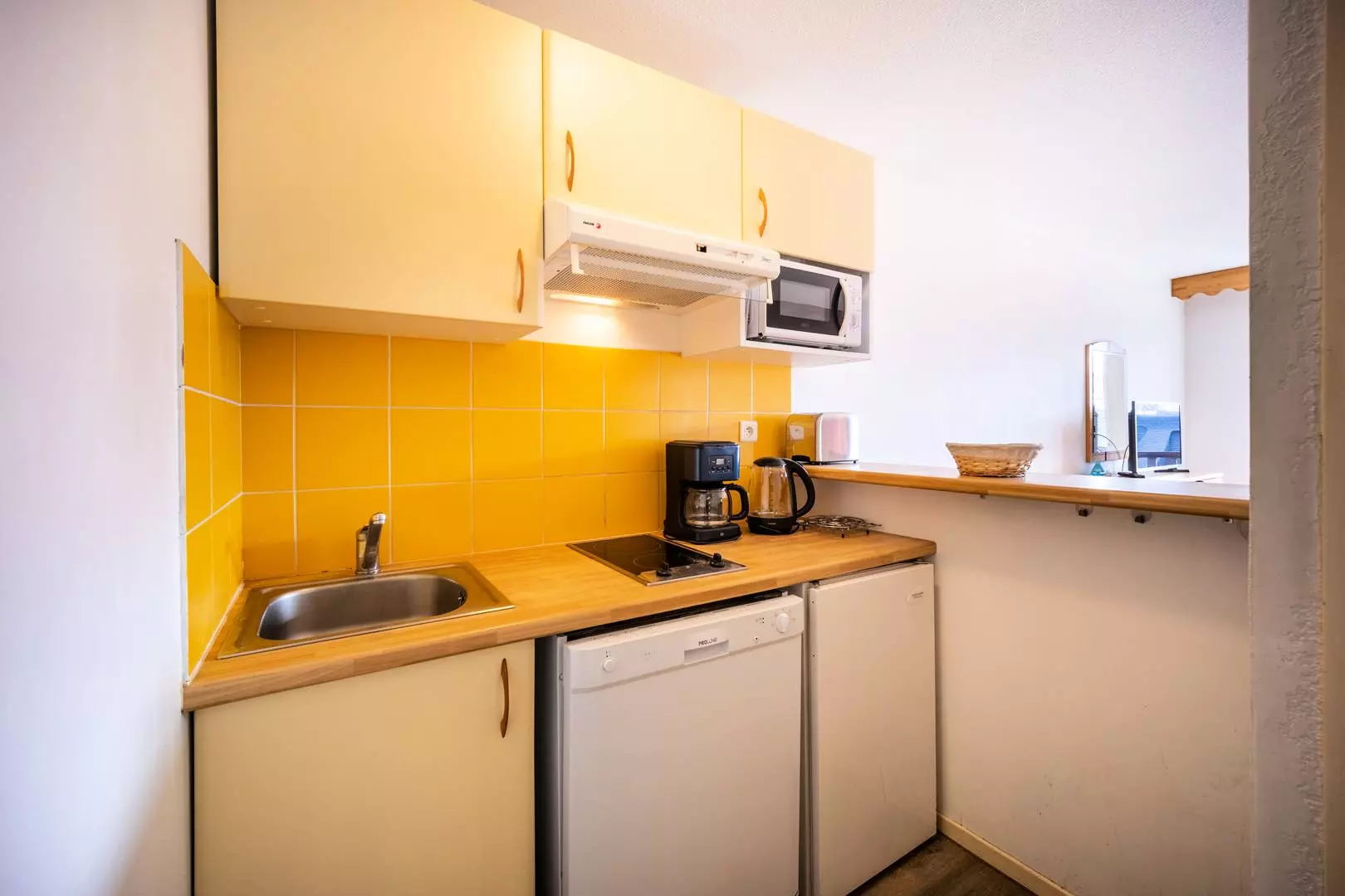 -Cuisine ouverte sur le séjour(2 couchages dans le canapé) Vue Pistes