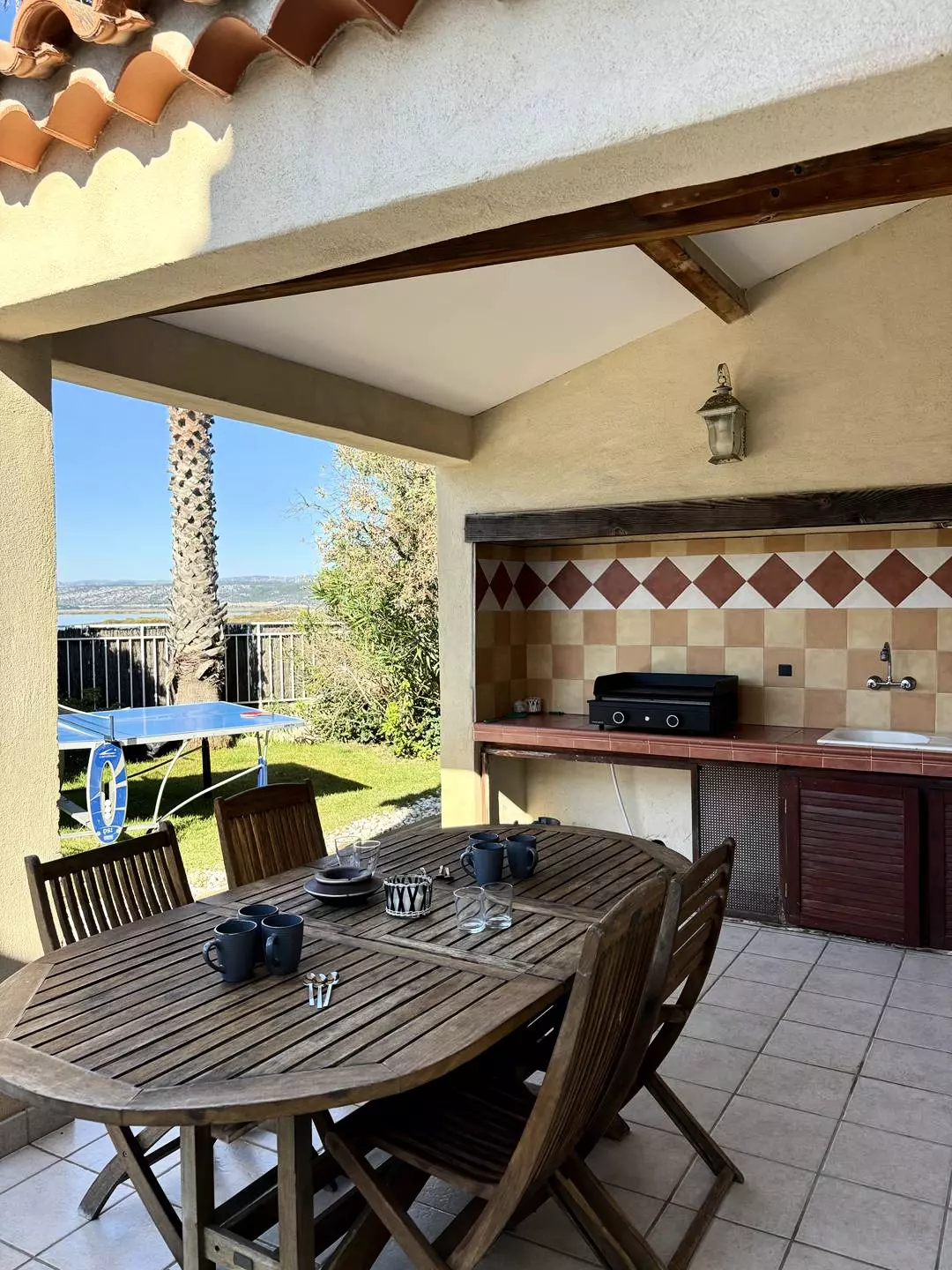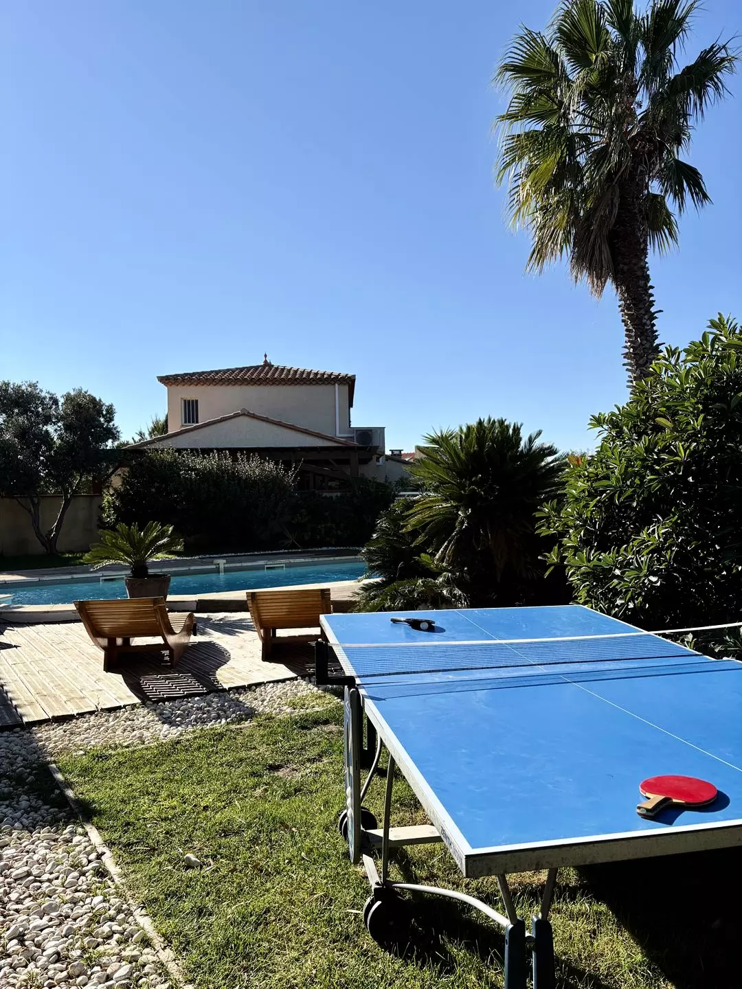 Les équipements extérieurs invitent au repos et à la convivialité : piscine privée sécurisée par alarme (ouverte de mai à octobre), salon de jardin, transats, parasols, coin plancha et barbecue, ainsi qu’une table de ping-pong.