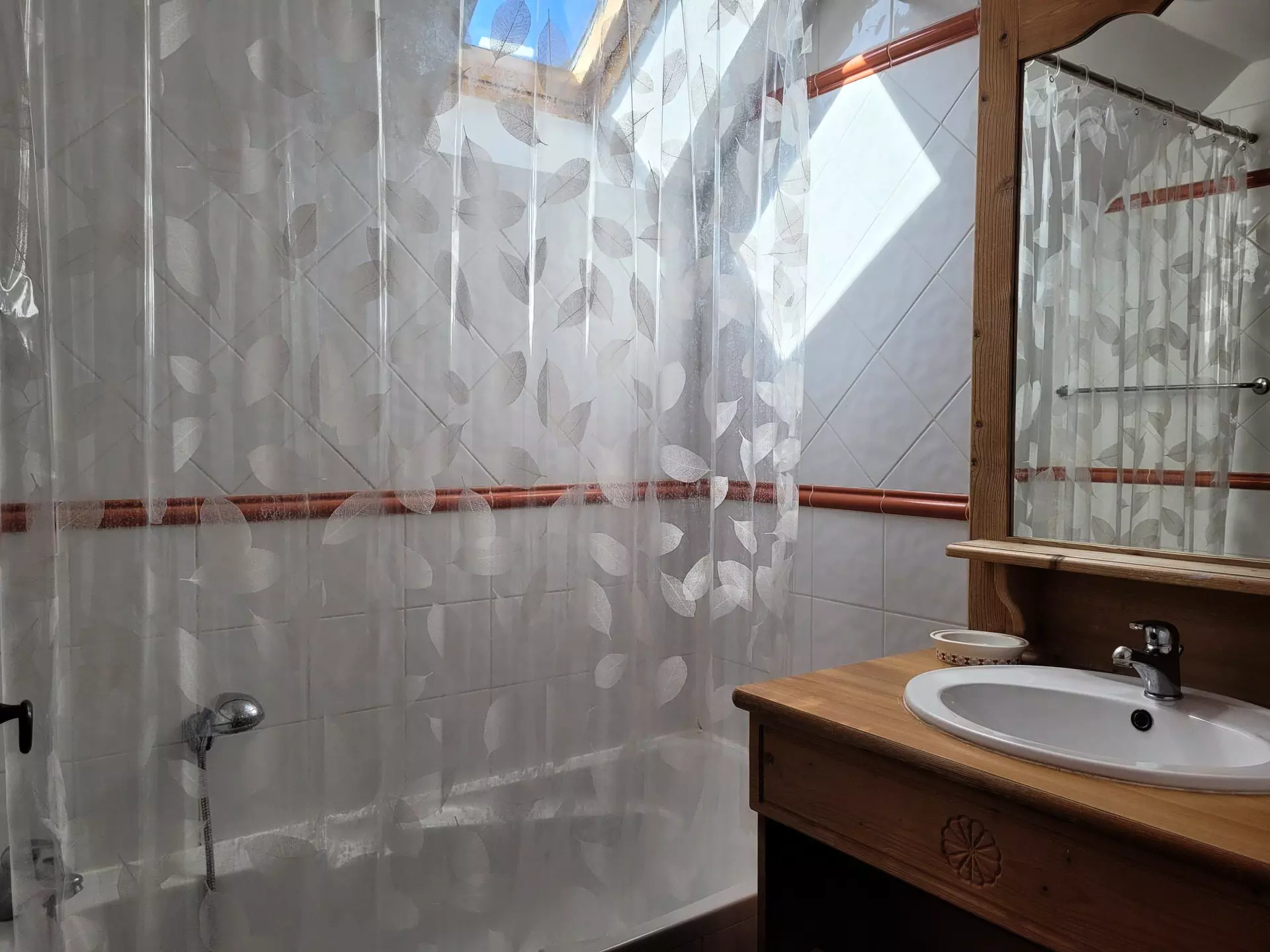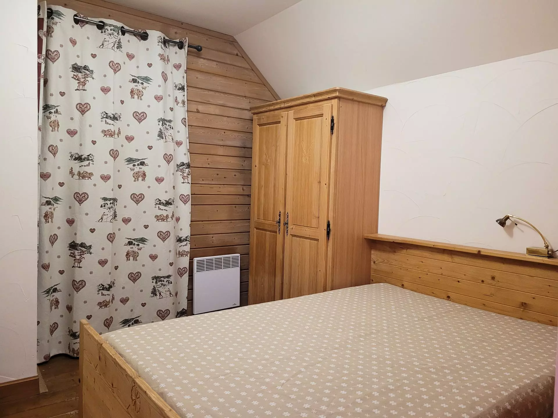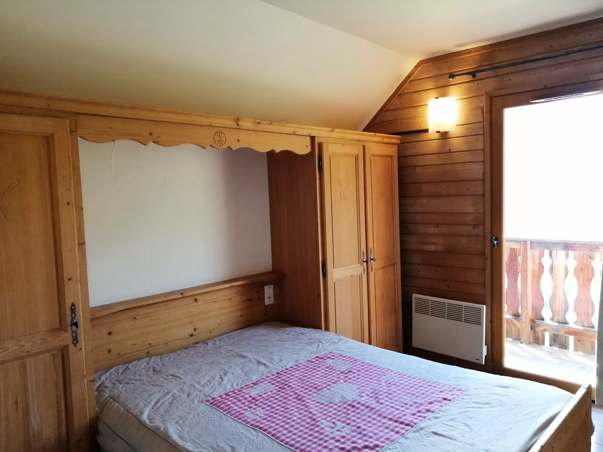 1/2 chalet sur 2 niveaux de type 3 pièces pour 4/6 personnes, 49m² environ ; Exposition Est / Sud avec terrasse et balcon, belle vue sur les montagnes.