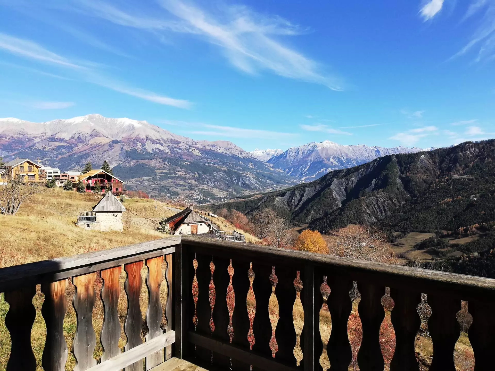 1/2 chalet sur 2 niveaux de type 3 pièces pour 4/6 personnes, 49m² environ ; Exposition Est / Sud avec terrasse, belle vue sur les montagnes, places de parking devant le chalet .