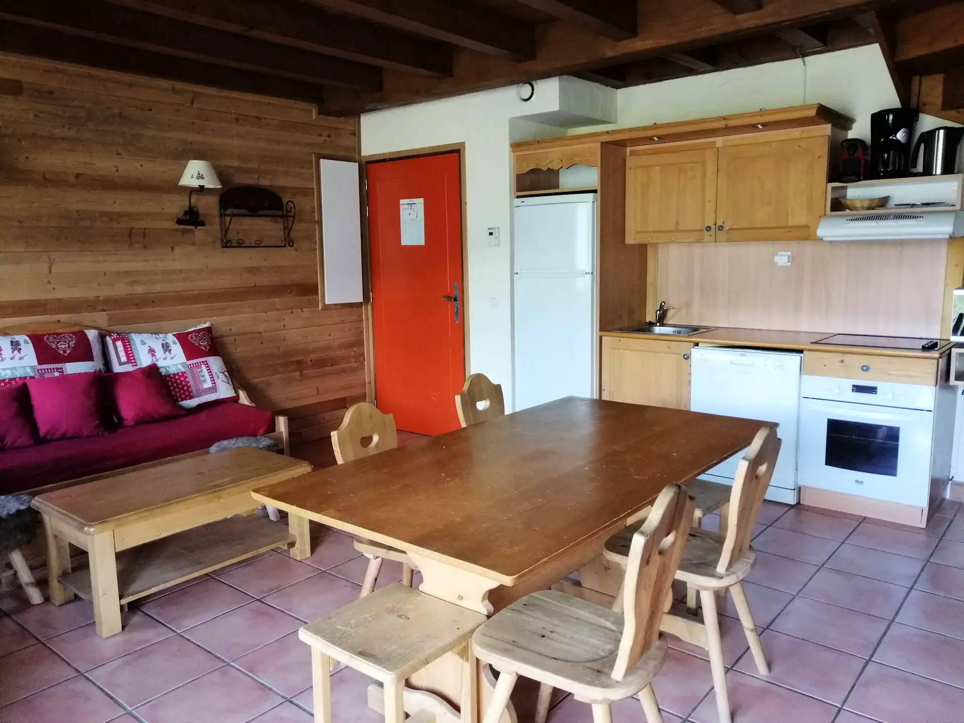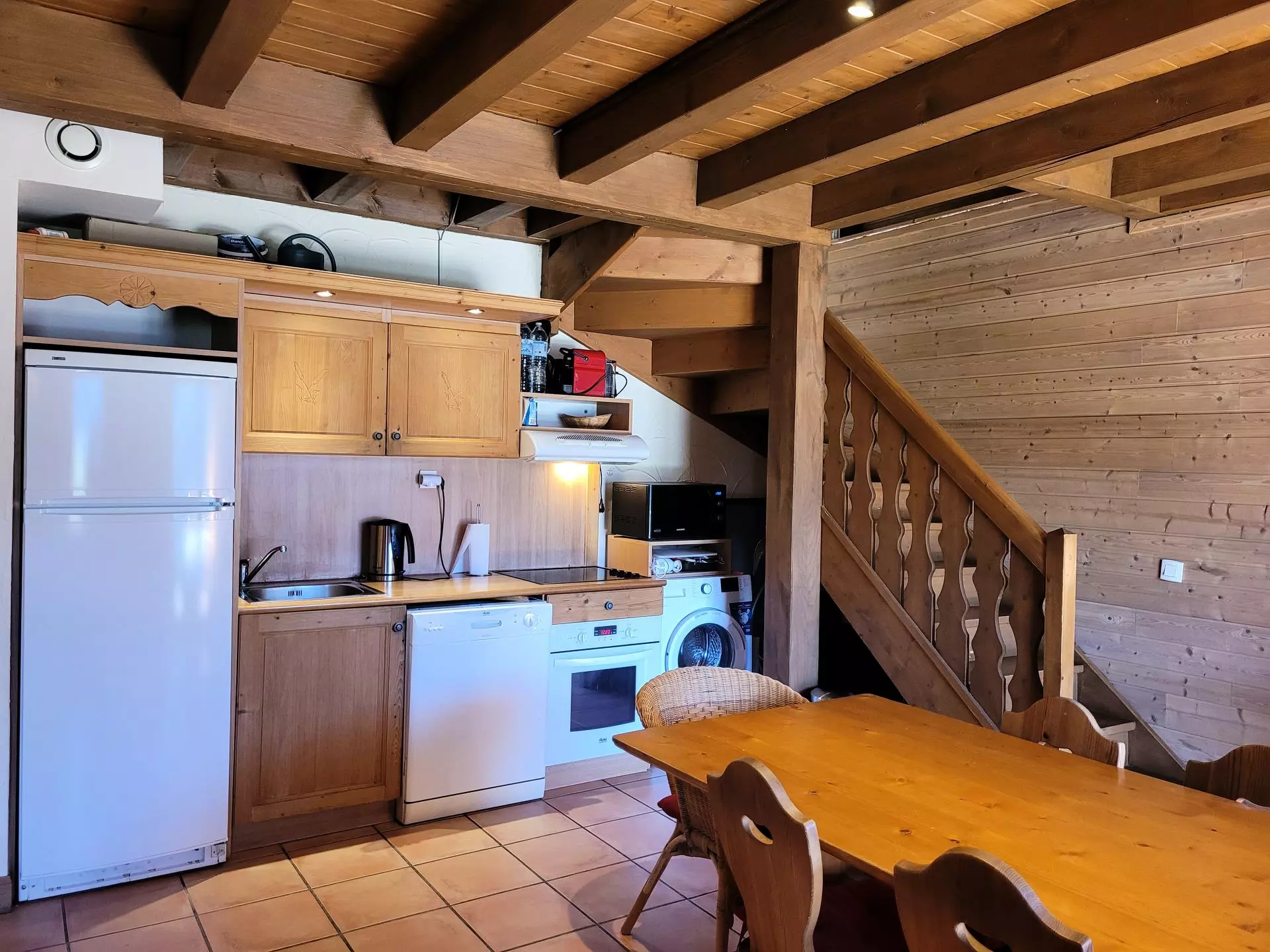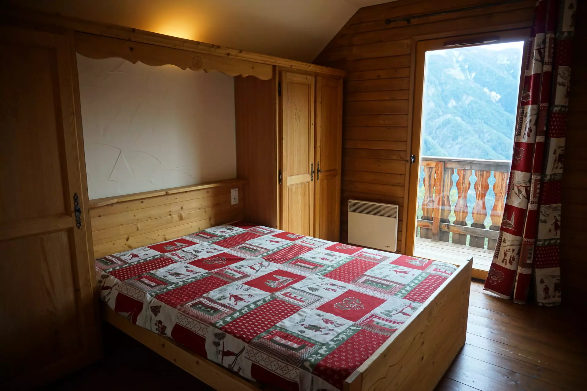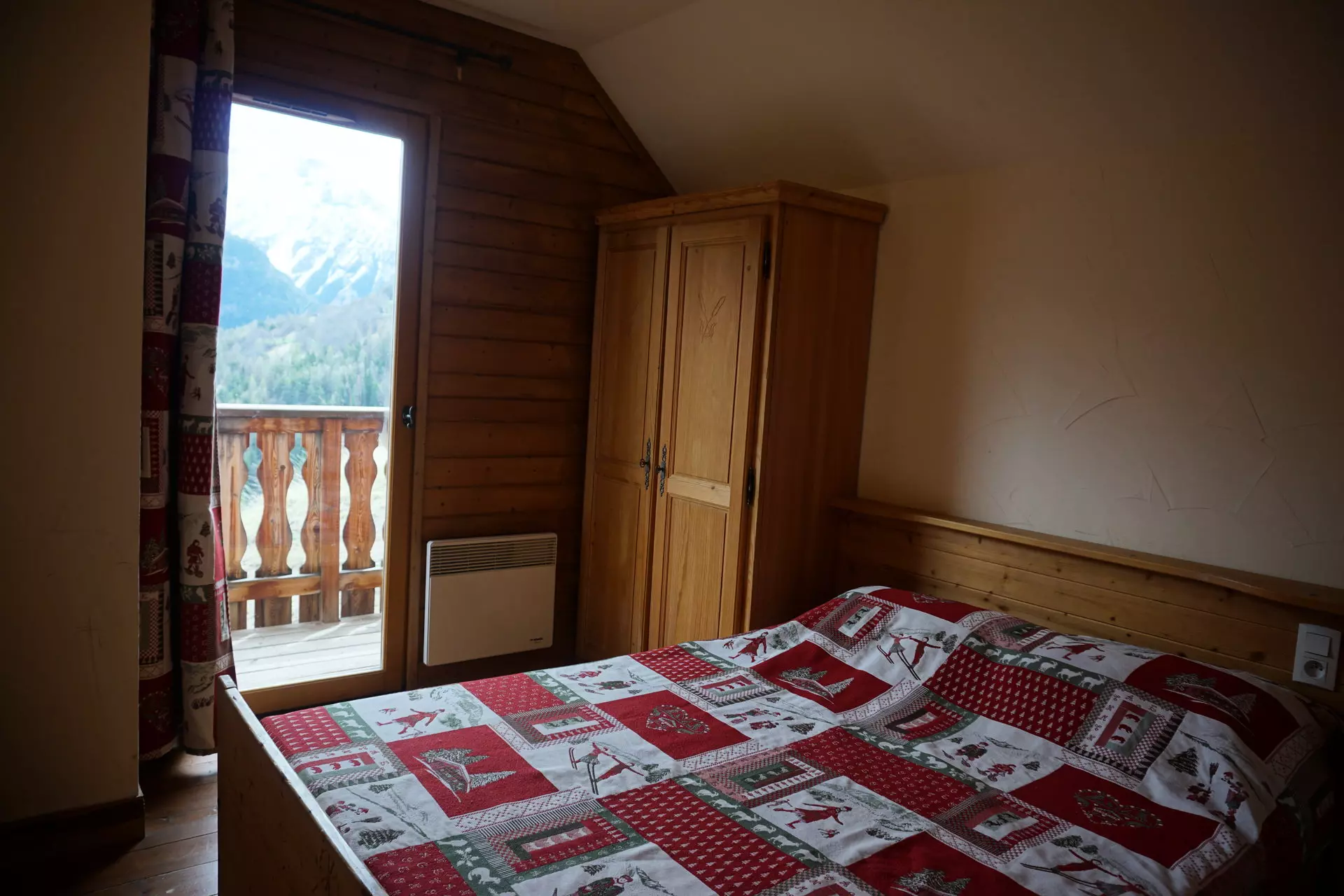 1/2 chalet sur 2 niveaux de type 3 pièces pour 4/6 personnes, 49m² environ ; au calme, terrasse plein Sud, ensoleillée avec une très belle vue dégagée sur les montagnes.