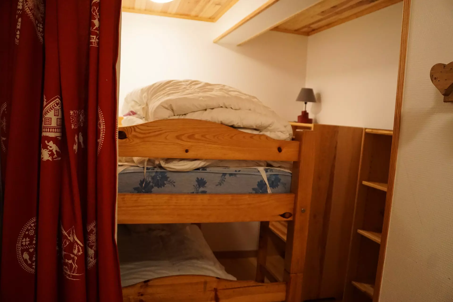 * Coin montagne : 2 lit superposés, étagères ;