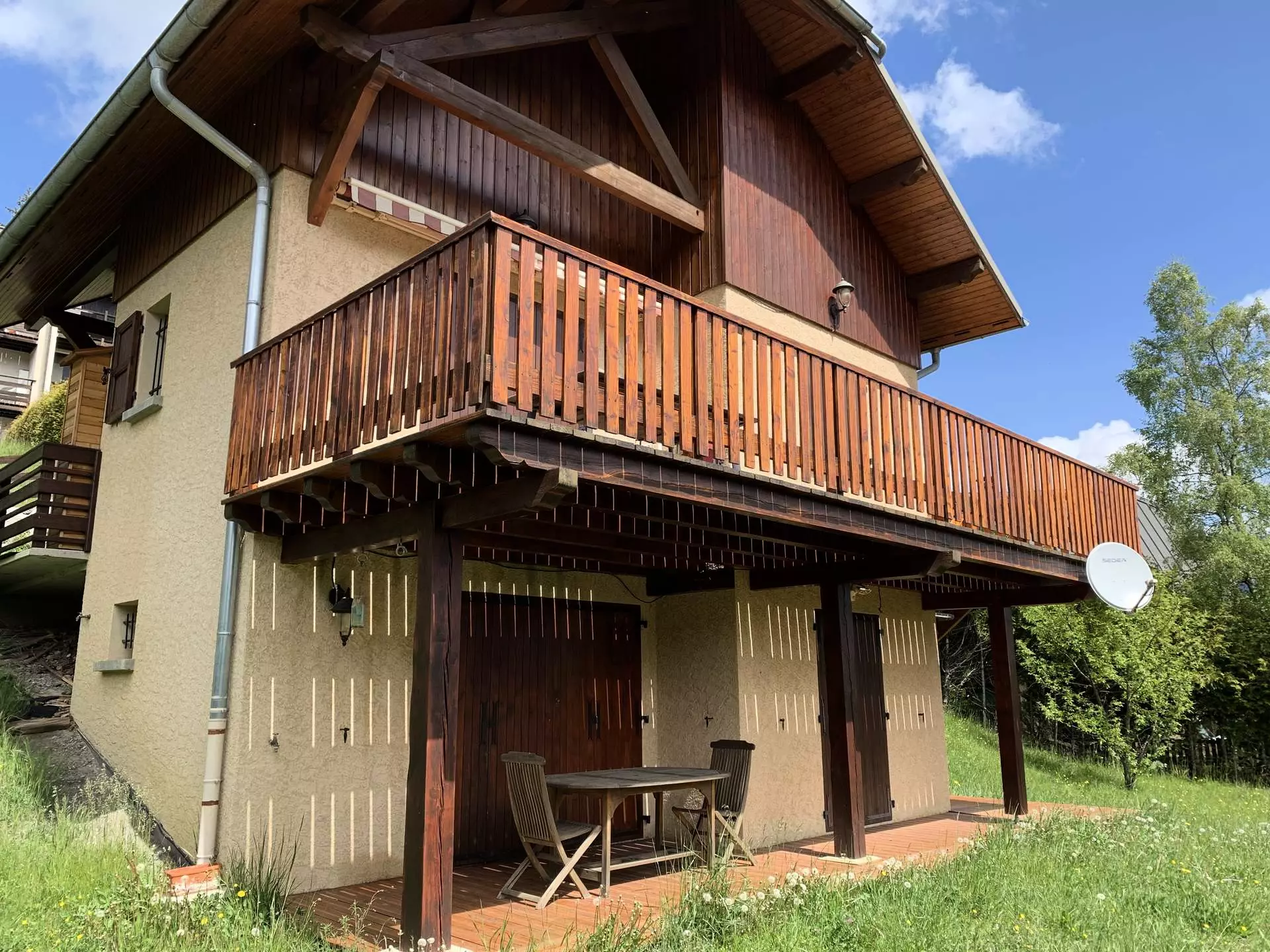 Chalet plein de charme pour 8/10 personnes sur 3 niveaux, 100m² environ. Exposé Sud avec grande terrasse et jardin. 30€ de WIFI obligatoire à régler avec le solde.