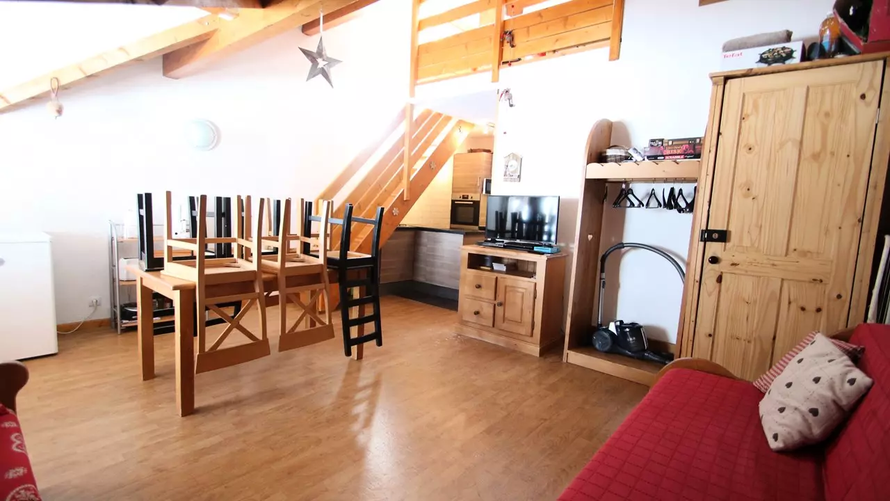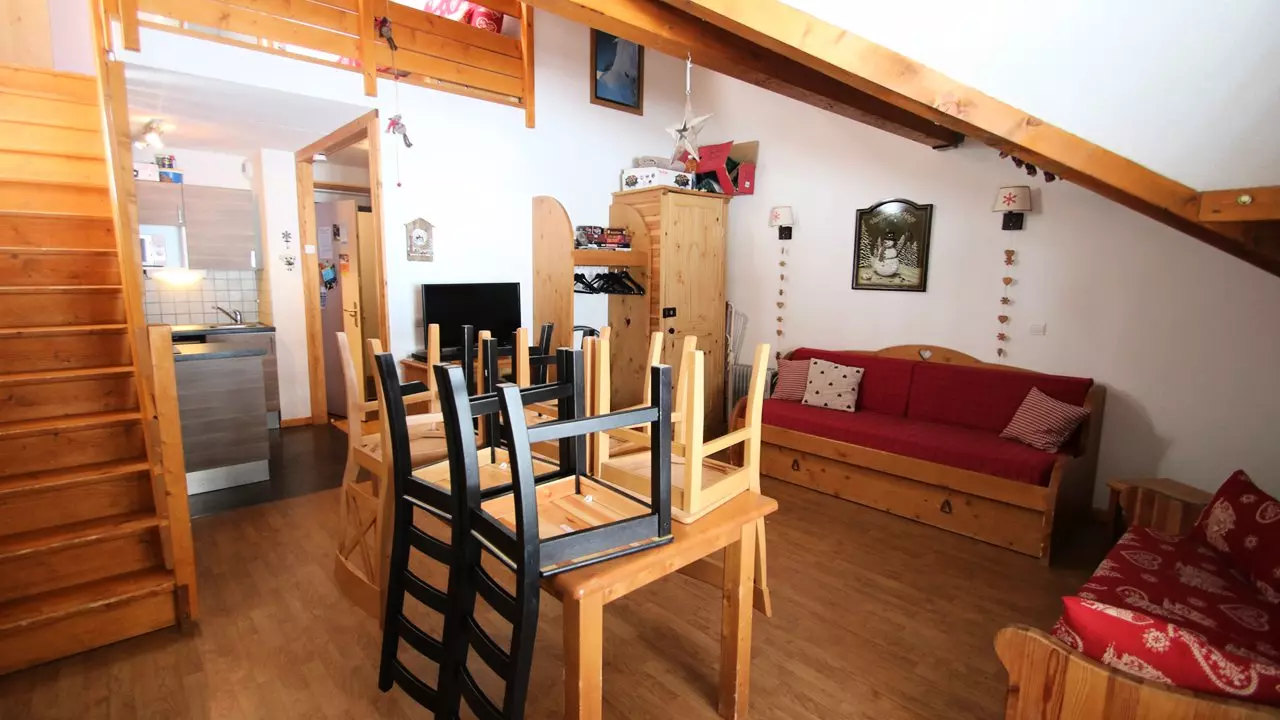 Au cœur des pistes de Puy-Saint-Vincent, idéal pour vos vacances au ski, location d'un joli appartement en duplex à 1800m, avec balcon, meublé et équipé pour 6 personnes. RÉSIDENCE LE PARC AUX ÉTOILES PISCINE ET SAUNA.