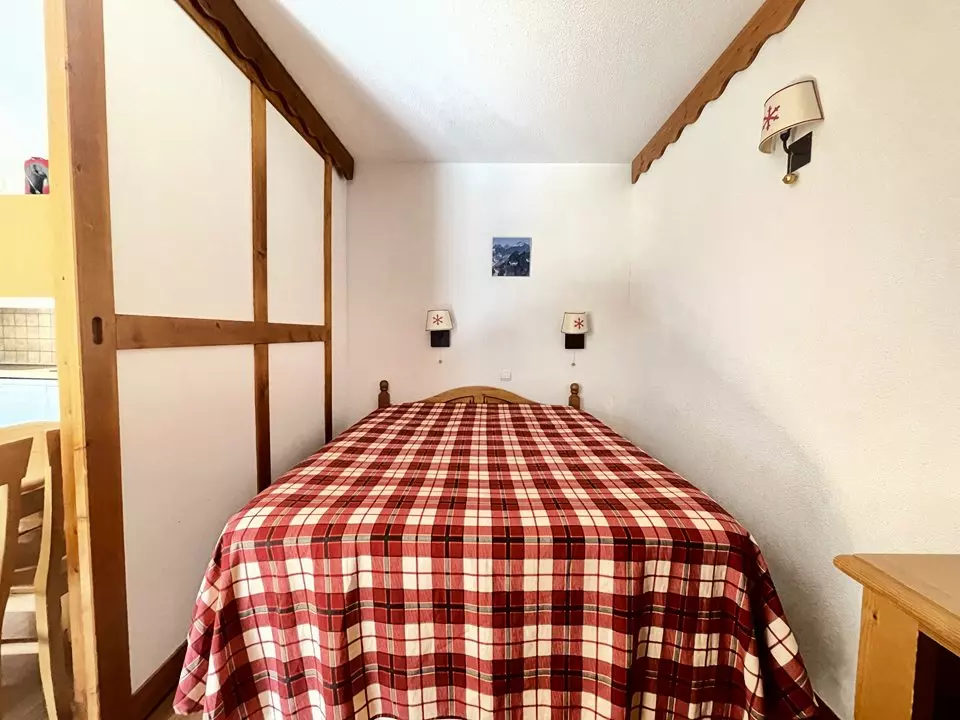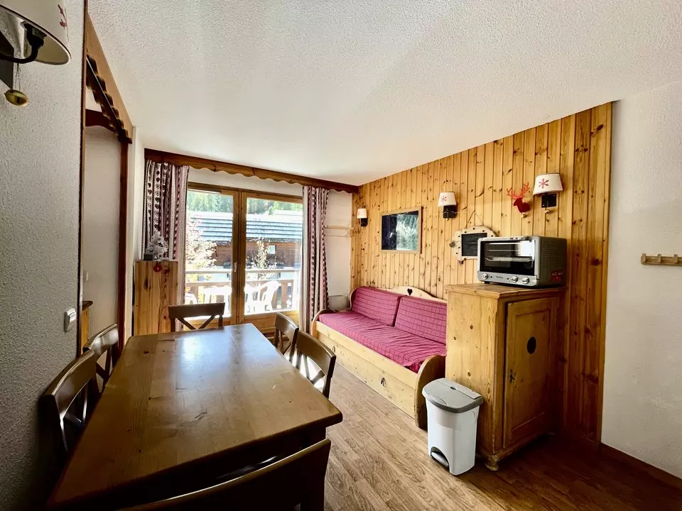 Au coeur des pistes, joli appartement de bon standing, balcon, meublé et équipé pour 4/6 personnes. RÉSIDENCE LE PARC AUX ÉTOILES PISCINE ET SAUNA.