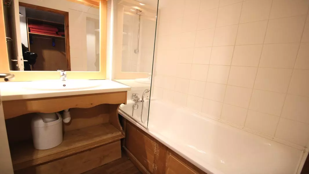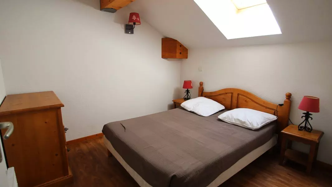 - Couchages : une chambre avec lit double (140x190) et étagères de rangement.