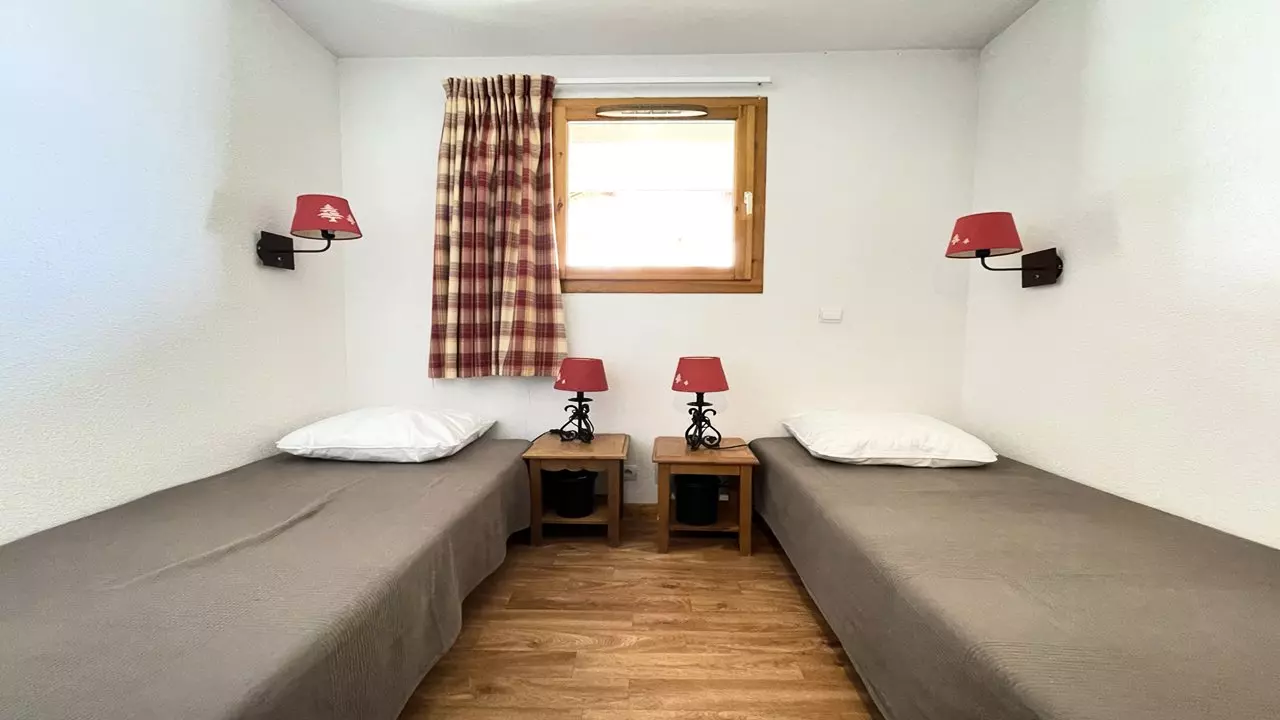 - Couchages : une chambre avec lit double neuf (160x200), une chambre cabine avec deux lits simples neufs (90x190) et étagères de rangement. Logement équipé de couettes et oreillers 60x60.
