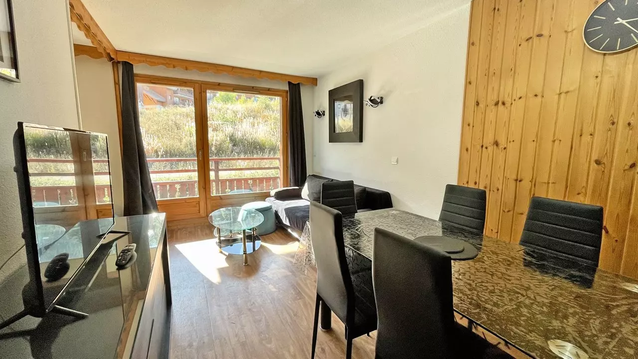 - Séjour avec canapé convertible (2/80x190 ou 160x190), table à manger, tv écran plat et balcon équipé de tables et chaises.