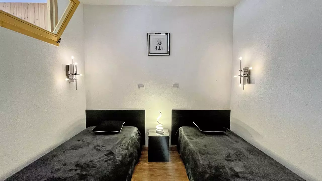 - Couchages : une chambre avec lit double (140x190) et une chambre cabine avec 2 lits simples (80x190). Lits équipés de couettes/couvertures et oreillers 60x60.