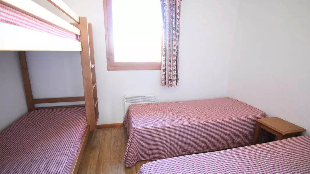 - A l'étage : une chambre avec lit double donnant sur un petit balcon sud, une chambre avec lit superposé et deux lits simples, placard et penderie. Salle de bain.