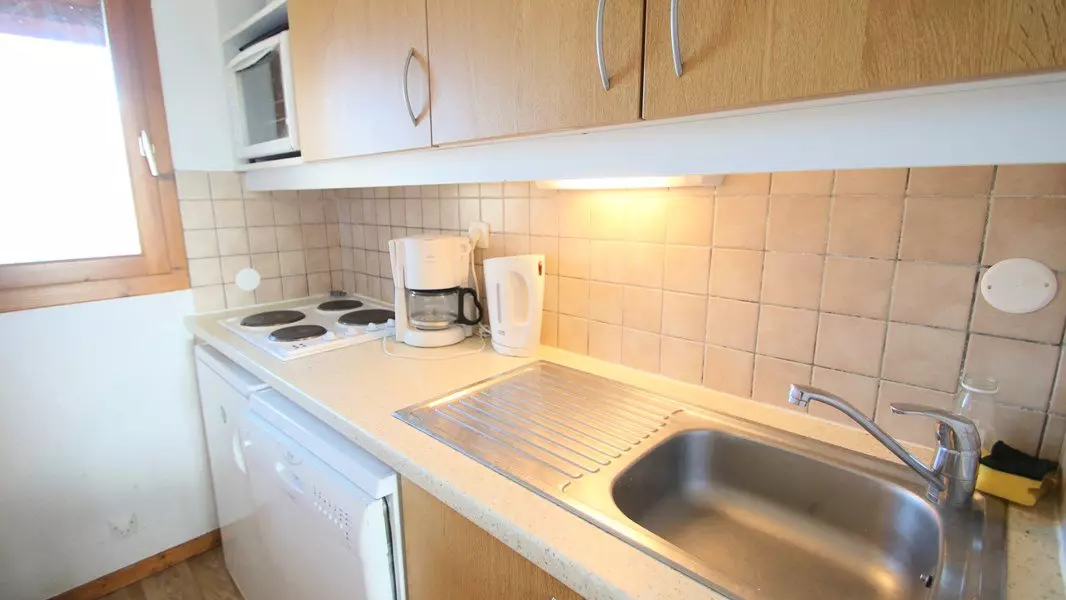 - Au rez de chaussée : une entrée avec placard et WC. Une cuisine équipée d'un lave vaisselle, de 4 plaques électriques, d'un mini four, d'une bouilloire, d'une cafetière, et d'un grille pain.