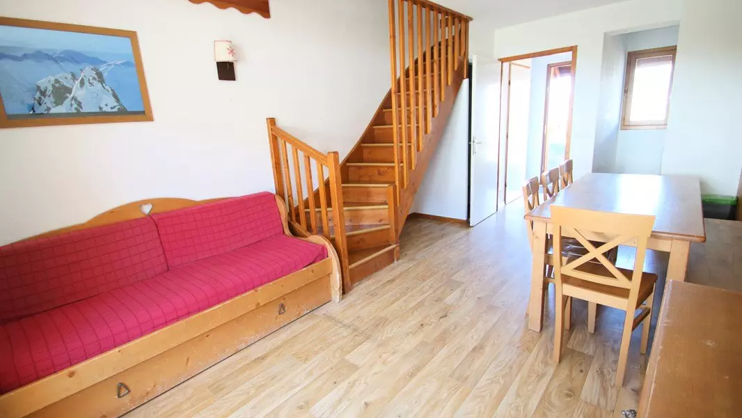 Un séjour comprenant une banquette gigogne avec sa terrasse exposée sud.