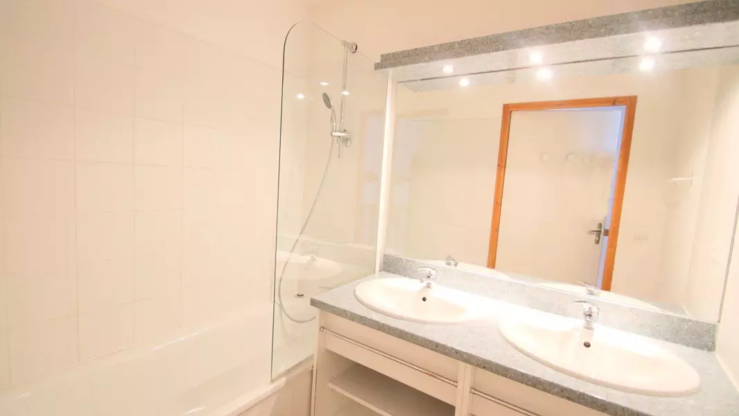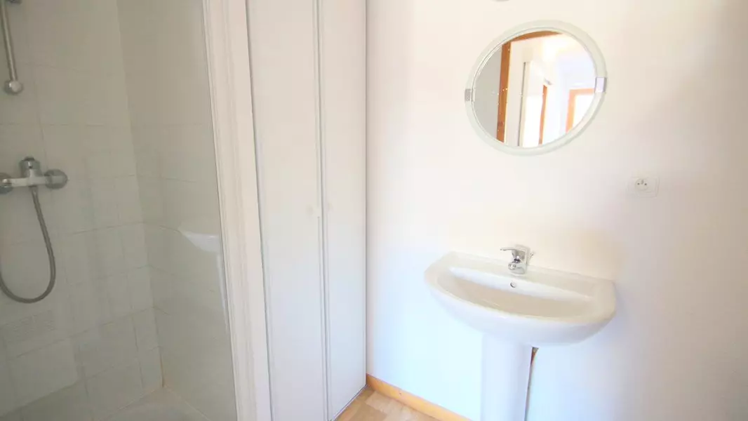 - Au rez de chaussée : une entrée avec placard et WC, une chambre avec lit superposé et cabine de douche.