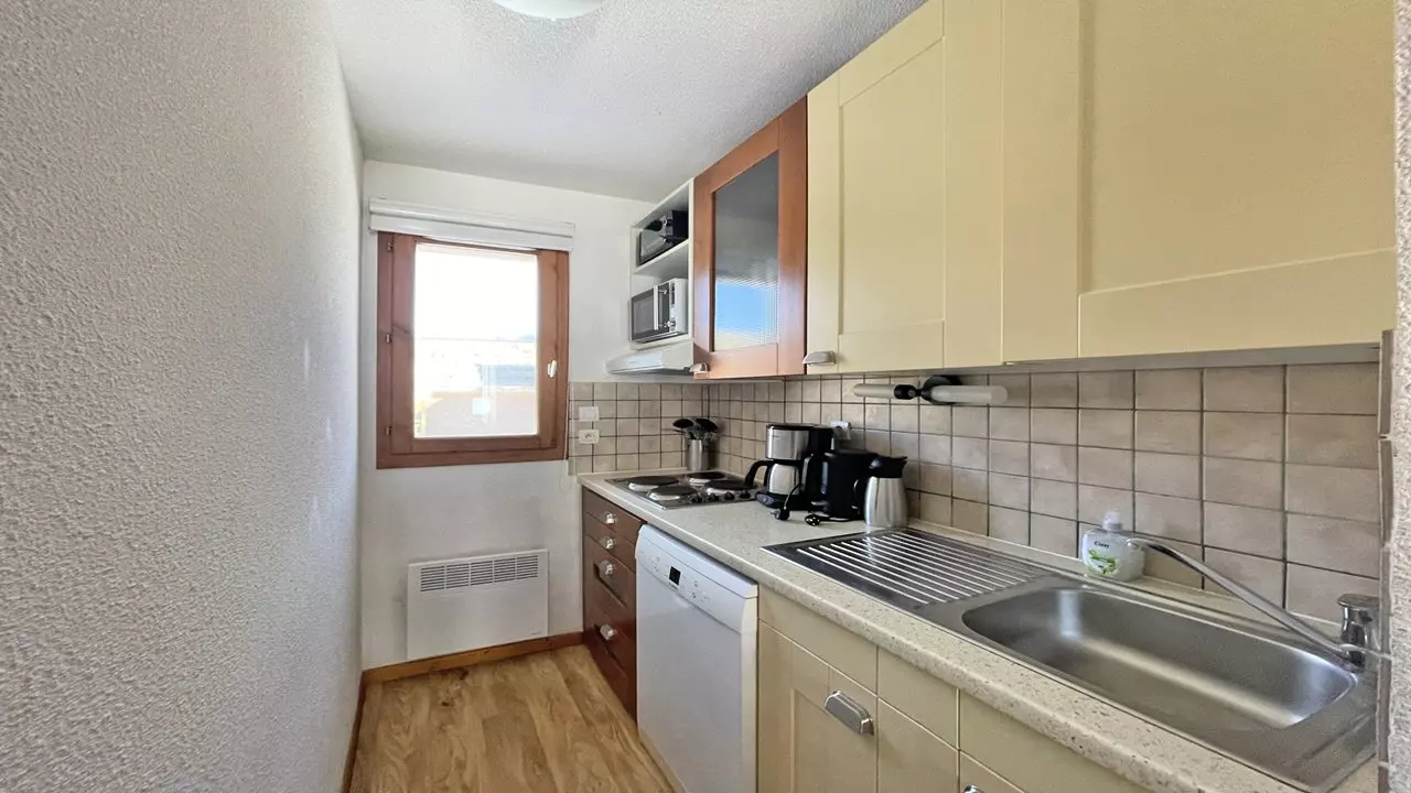 - Au premier : une cuisine équipée d'un lave vaisselle, de 4 plaques éléctriques, d'un micro onde et mini four, d'une bouilloire, d'une cafetière, d'un grille pain.