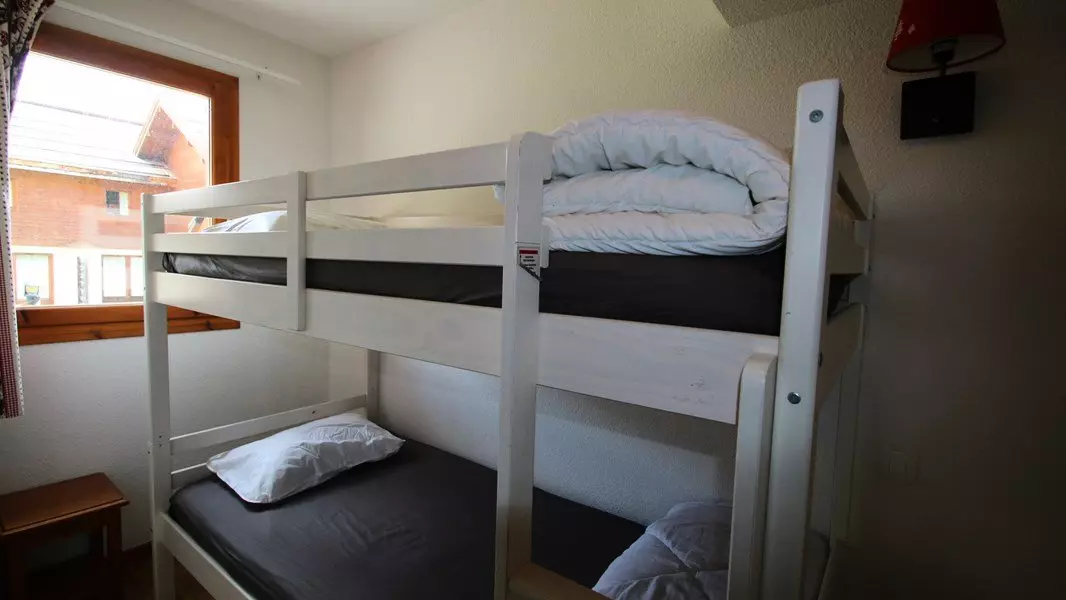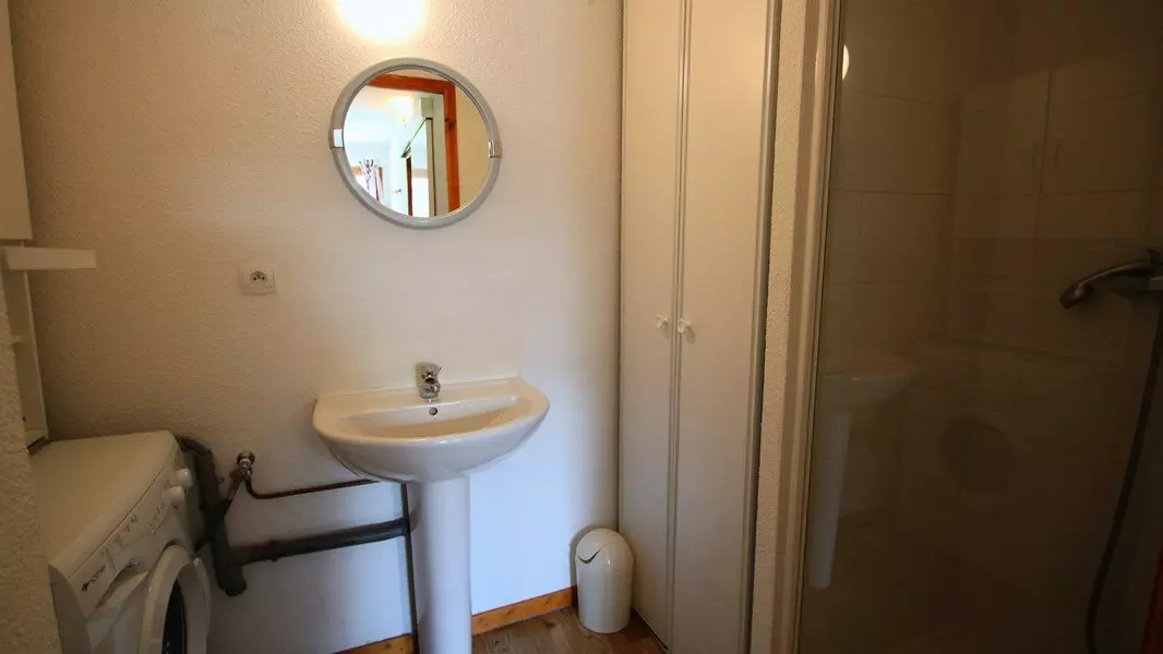 - Au rez de chaussée : une entrée avec placard et WC, une chambre avec lit superposé et cabine de douche, avec lave linge.