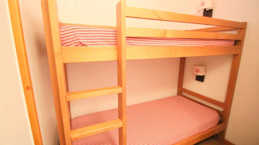 - Couchages : une chambre avec lit double et une cabine avec lit superposé (placard et penderie)