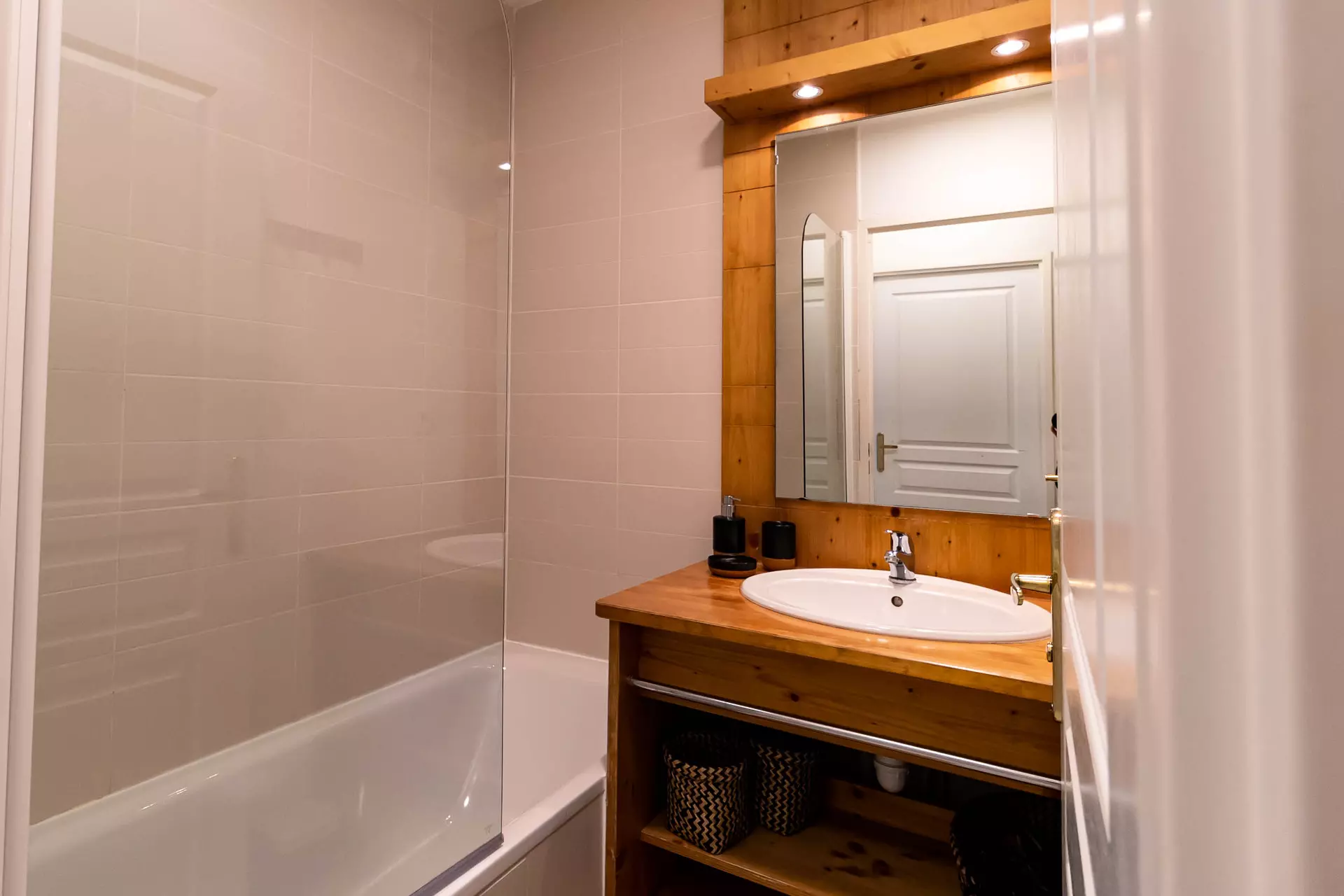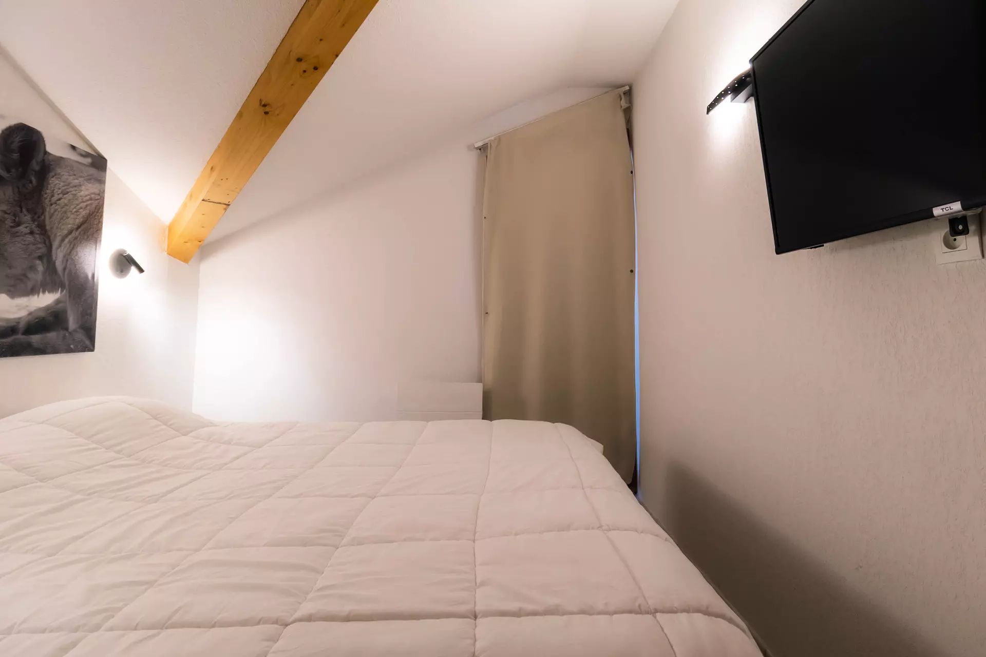 Il dispose d'une entrée avec rangement, d'un salon chaleureux avec canapé convertible, télévision connectée et décoration moderne, d'une salle à manger - cuisine toute équipée, d'une chambre séparée et d'une salle de bain avec baignoire pour se détendre au retour des pistes, pour une superficie totale de 33 m², auxquels s'ajoute le balcon avec salon de jardin. Restez connectés même pendant vos vacances grâce à un accès internet fibre inclus avec ce logement !