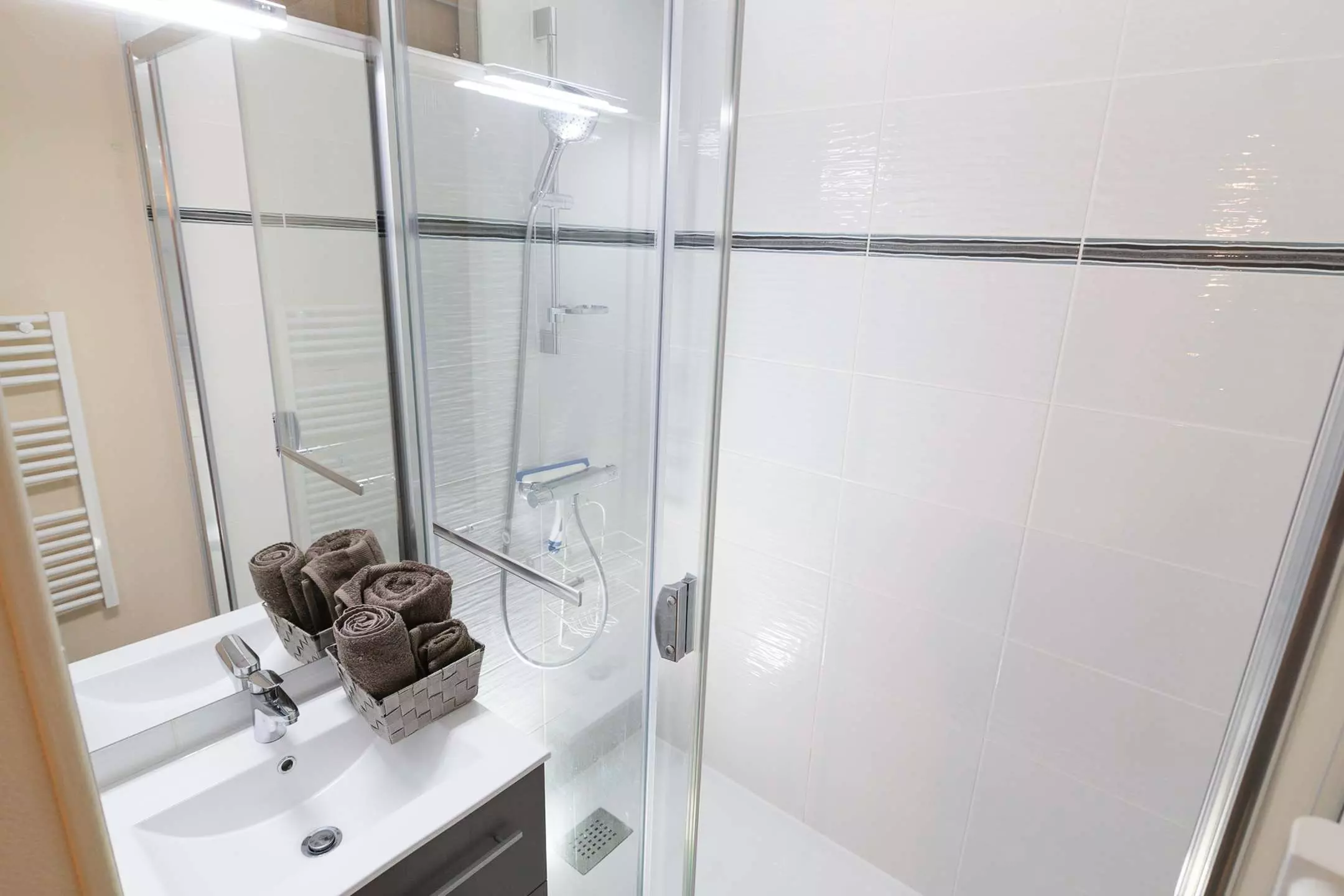 Produits ménagers et tapis de bain non fournis