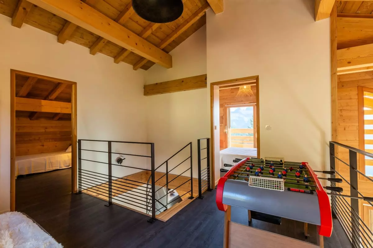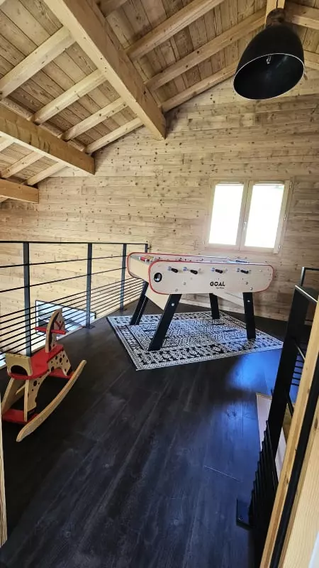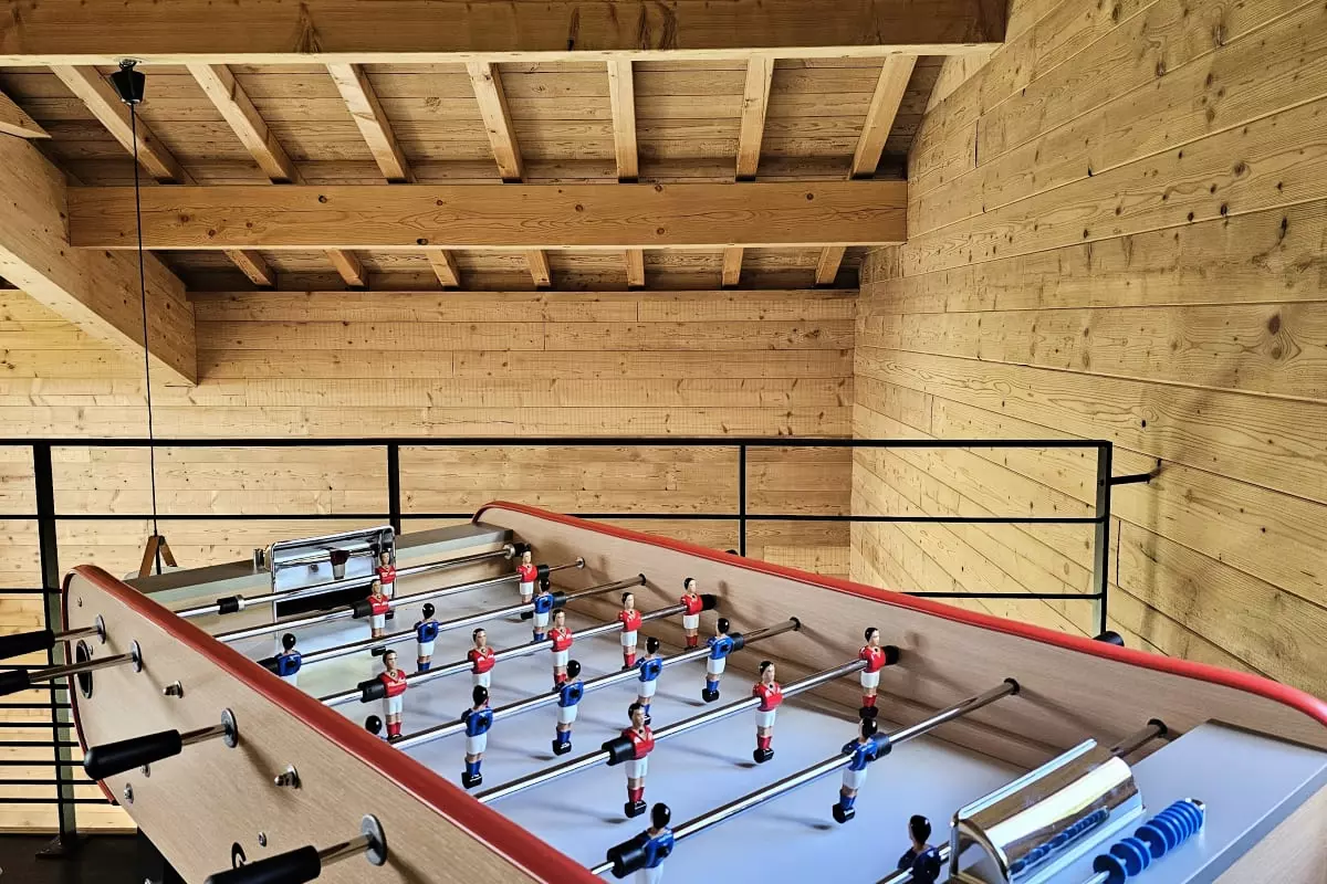 - et 1 salle de jeux en mezzanine avec un baby-foot