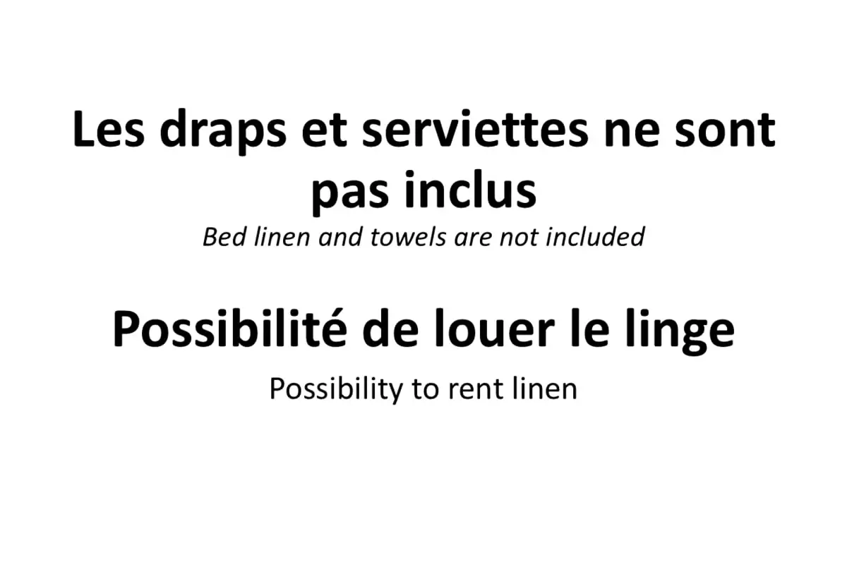 Les draps et serviettes sont fournis sur frais supplémentaires, afin de vous proposer le chalet à au prix le plus compétitif possible. Pas de réservation possible moins de 48h avant le séjour.