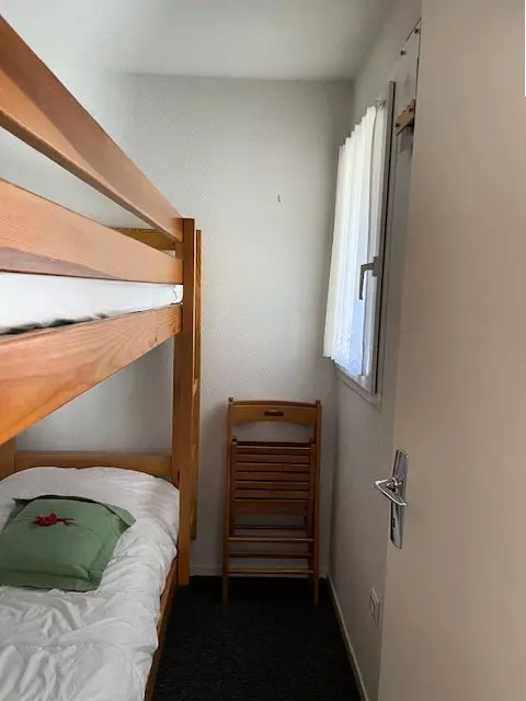 Au premier étage de la résidence ASPIN I, appartement pour 4 personnes composé : Un séjour avec canapé et kitchenette équipée 2 plaques, évier, frigo,micro-ondes, lave-linge et rangements donnant sur balcon Sud. Un espace nuit séparé avec un lit 2 pers. et une cabine avec fenêtre et 2 lits en 90 superposés.Salle de bain avec baignoire. Wc séparés. Moquette. Env. 30 M2.Séjour 12 M2 env.Parkg. Appartement coquet, confortable et ensoleillé.
