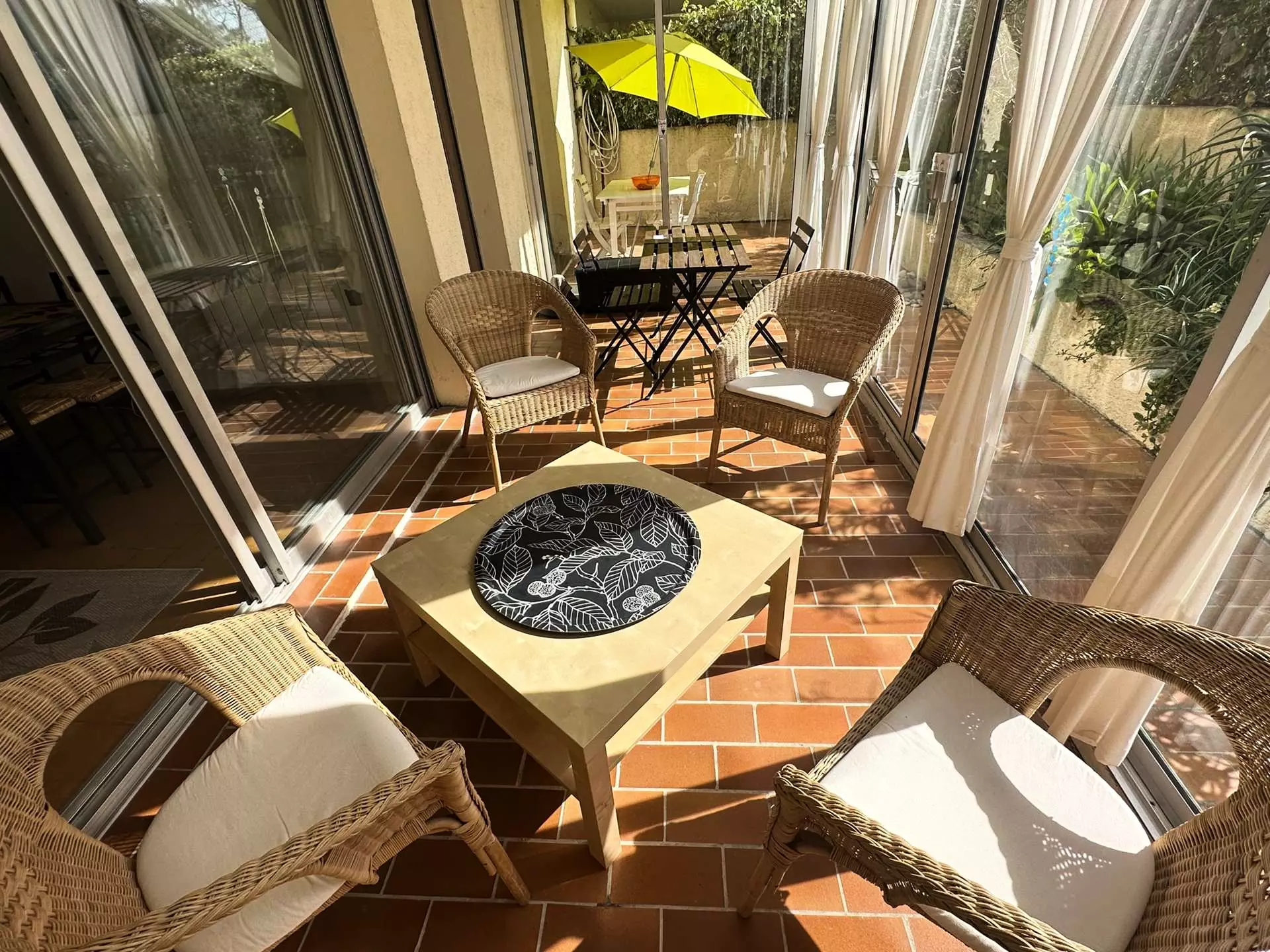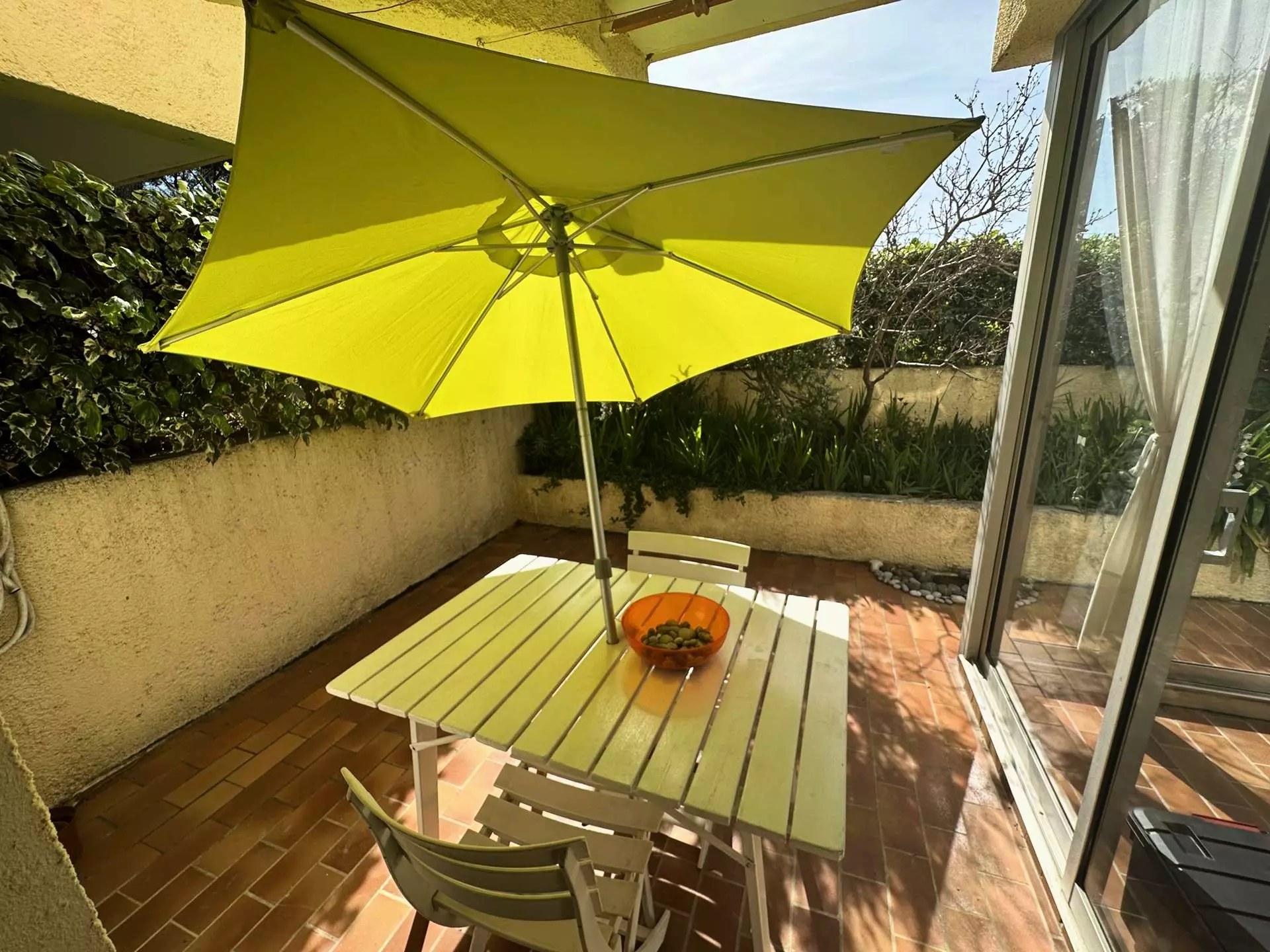 - Salon de jardin, transats (3), parasol,