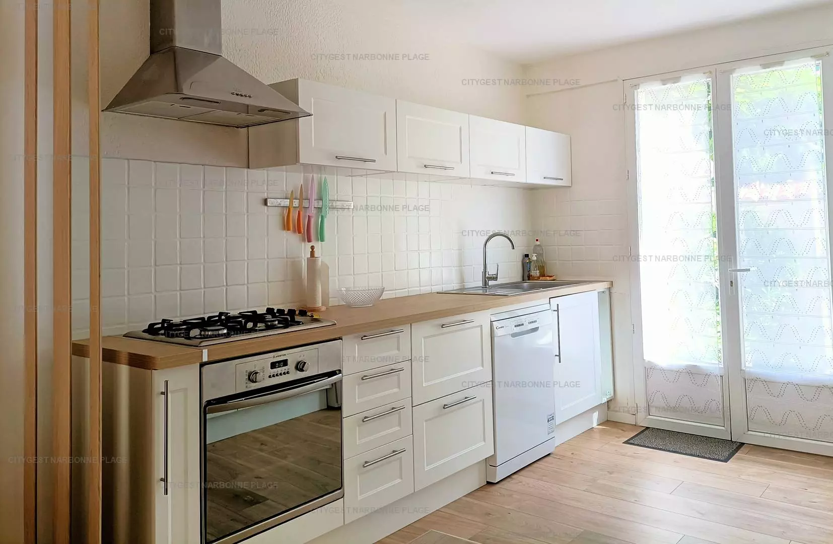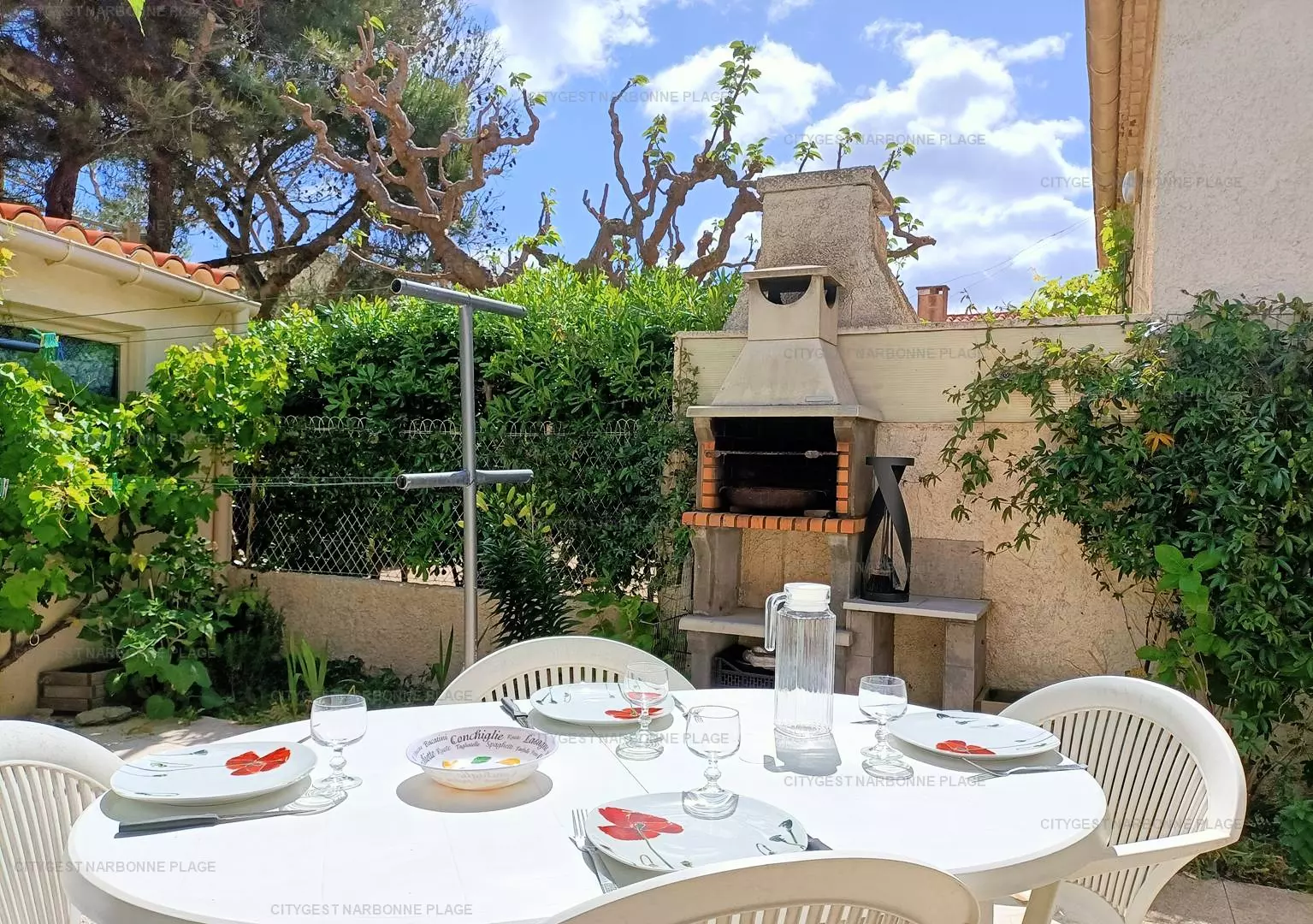 Charmante maison familiale à Saint Pierre La Mer, à 200m de la plage, équipée et meublée pour 10 personnes, entièrement climatisée, extérieurs et parking.